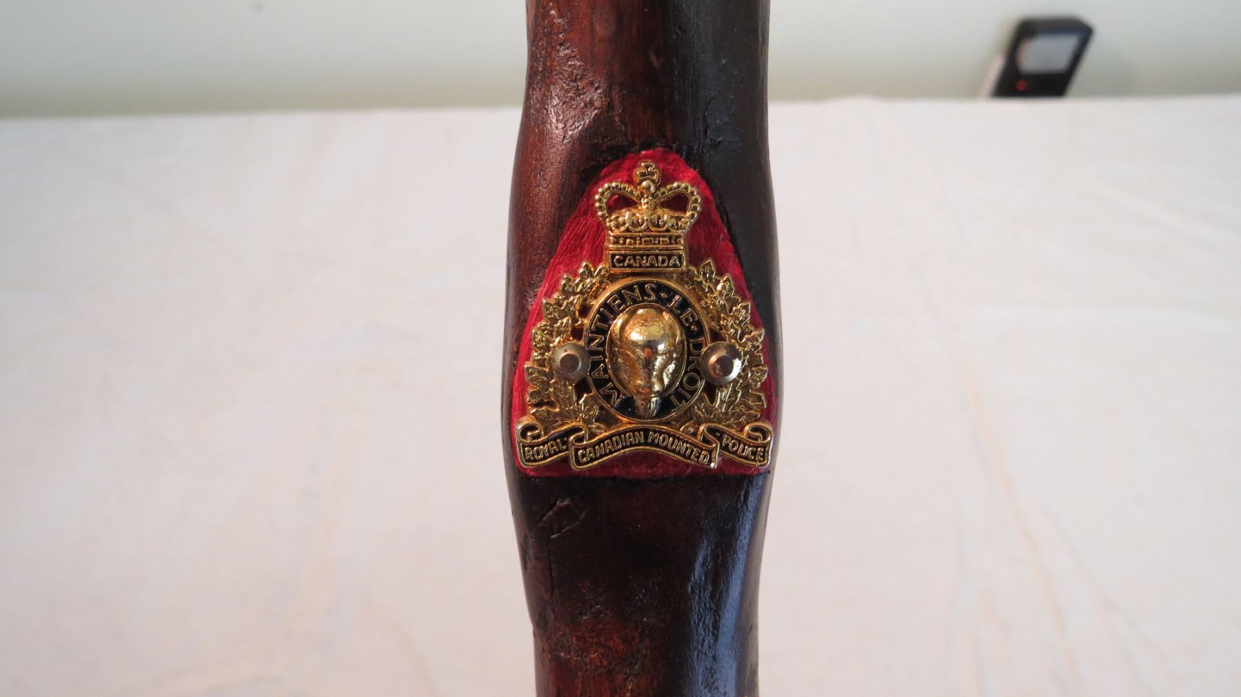 Wooden Cane walking stick with RCMP emblem
