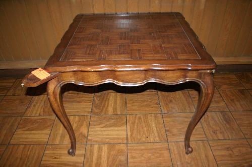 Wooden Card Table with 4 drink holders that pull out in the corners. Table measures 34" x 34" x 30 high"