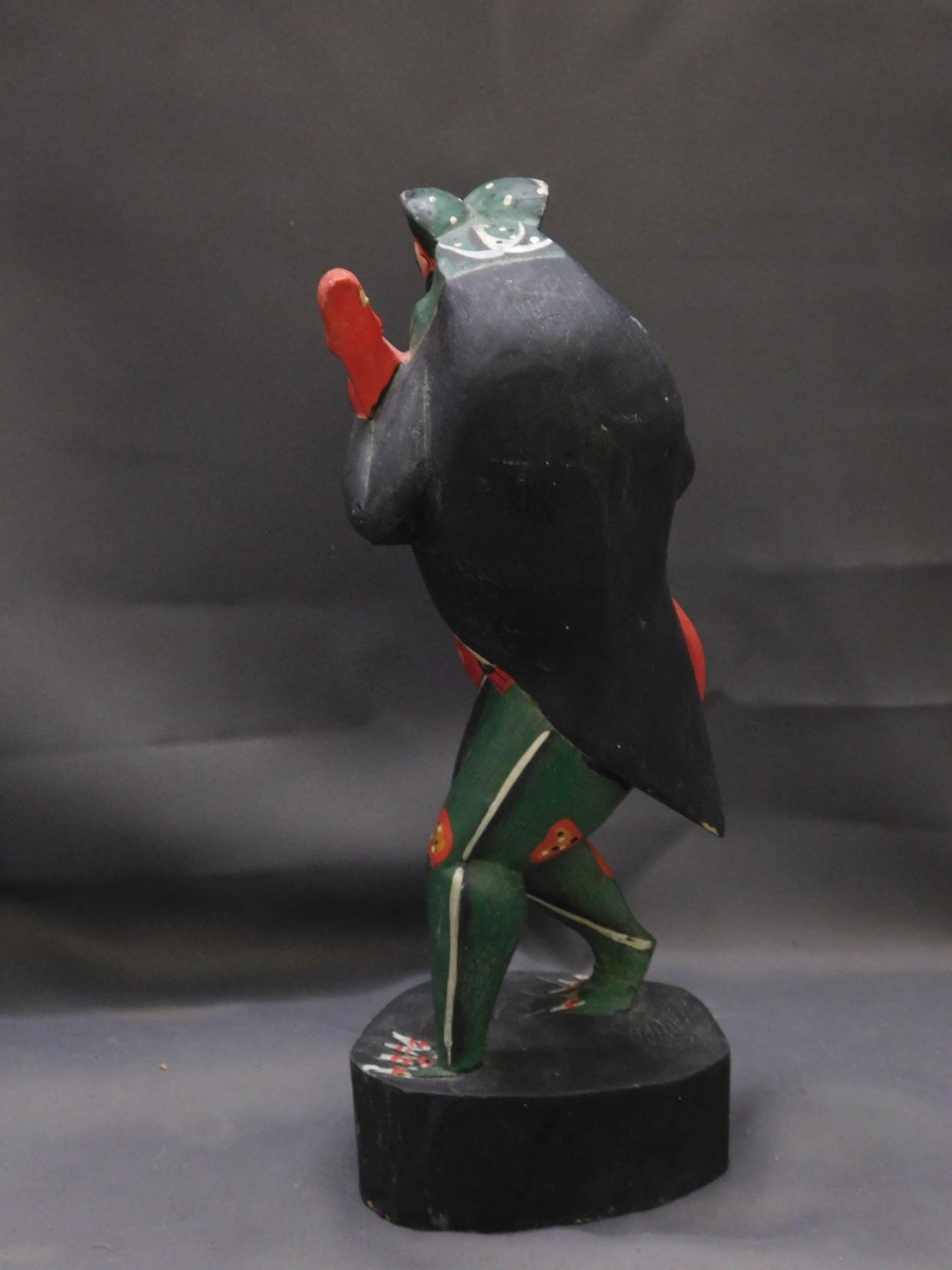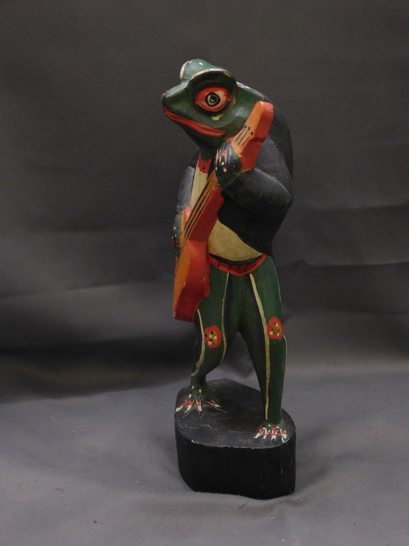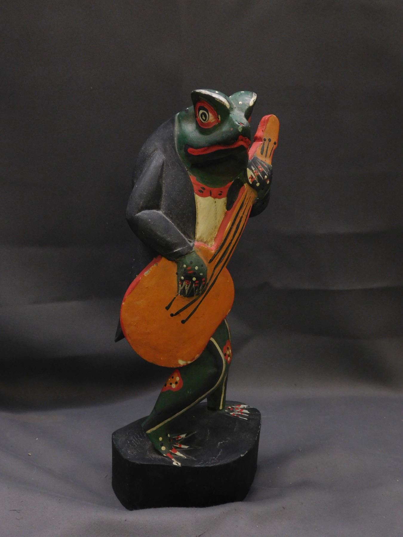 Wooden Carved Frog / Toad Playing Banjo 14"