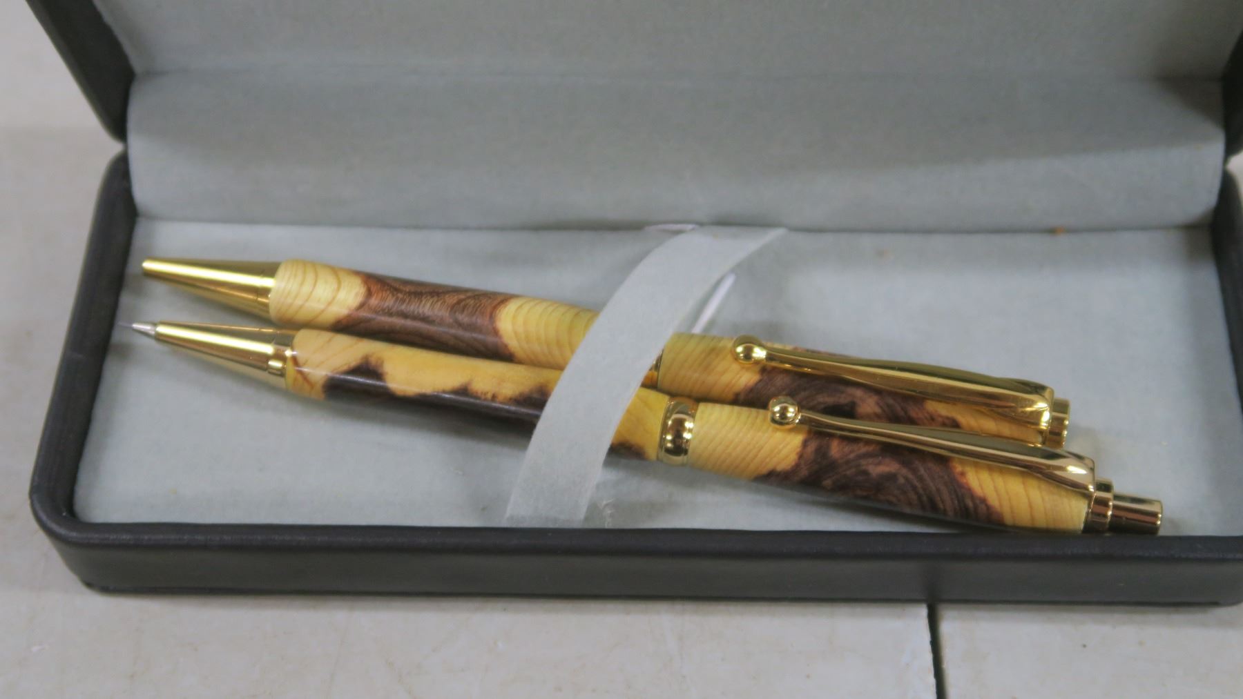Wooden Carved Pen & Pencil Set, Silver Colour Pen