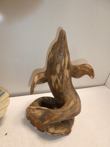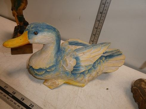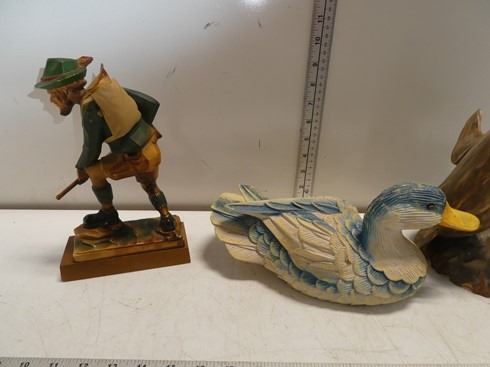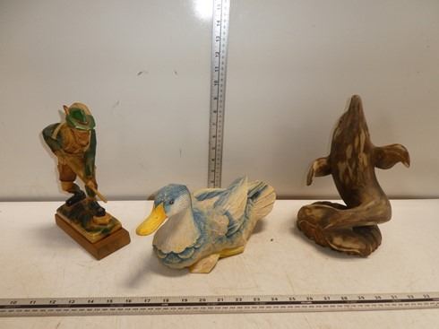 Wooden Carved Statues, Hunter, Duck and Dolphin
