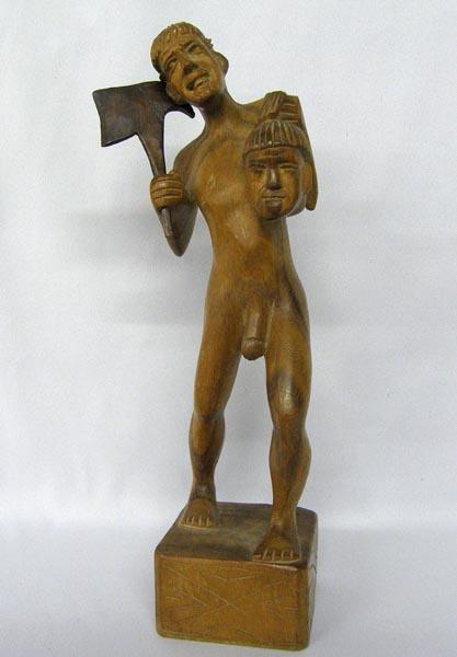 Wooden Carving of Man with Severed Head. Origin Unknown. Measures approx. 12''Hx4''W. Buyers Pay Actual Shipping and Handling Charges(see terms and conditions for more information).