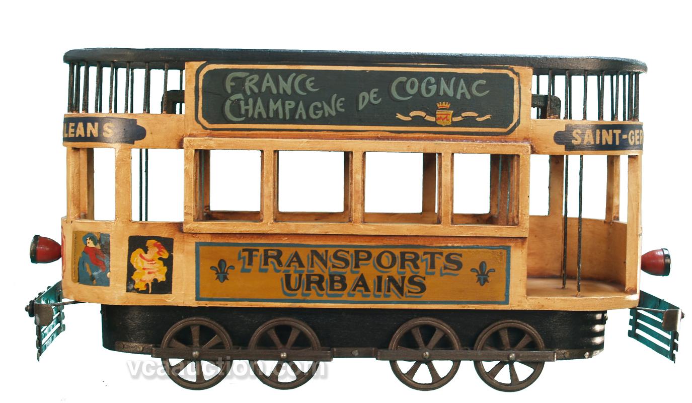Wooden & Cast-Iron Cable Car Model - 27" x 8" x 15" Tall