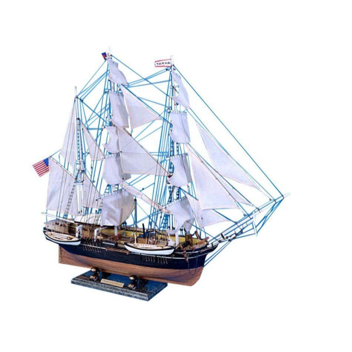 This museum-quality Limited Edition scale replica tall ships model of the Charles Morgan is bedecked with historically accurate features and built with the finest craftsmanship and attention to detail. As a hard-working and long-sailing New England whaling ship, the Charles Morgan holds a proud place in American maritime history. Now these Limited Edition tall ship models can similarly inhabit a proud position, displaying their historical and indomitable adventurous spirit in your office, home or meeting room. 32" Long x 9" Wide x 25" High (1:42 scale) Built from scratch by master artisans Museum Quality features not available in other tall ship models under $3,000 or any kit Individual wooden planks used in hull construction High quality woods include cherry, birch, maple and rosewood Extensive rigging featuring over 100 deadeyes and blocks Meticulous painting accurately matches the actual Charles Morgan Amazing Details, including: Planked deck with nail holes Authentic scale whaleboats Rudder chains and metal anchors Deck details such as barrels, detailed deckhouses, storage crates and more Masterfully stitched, heavy canvas sails hold shape and do not wrinkle Taut rigging with varied thread gauge and color Limited production run only 25 of these tall ship models Certificate of Authenticity individually numbered and signed by HMS Founder and Master Builder Richard Norris Wooden display base features four arched dolphins Pictured with marble base (available for purchase) Extensive research of original plans, historical drawings, and paintings as well as actual photographs ensures the highest possible accuracy
