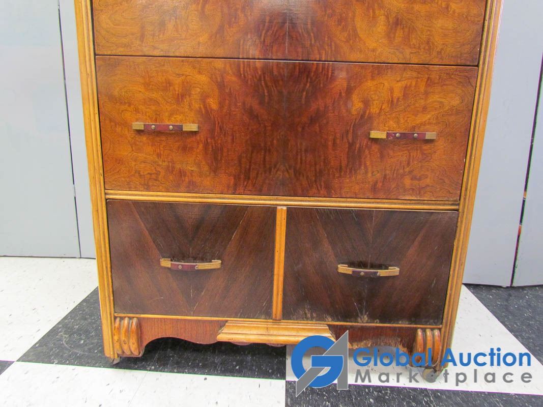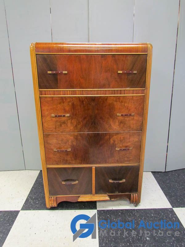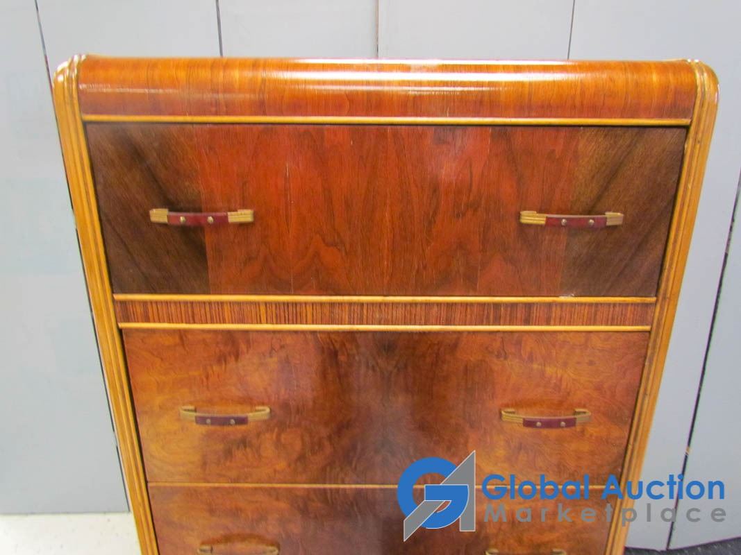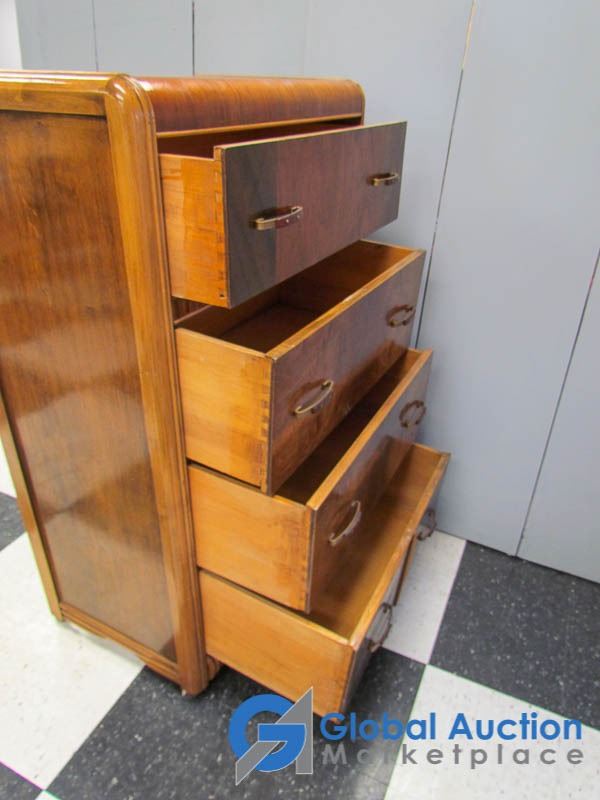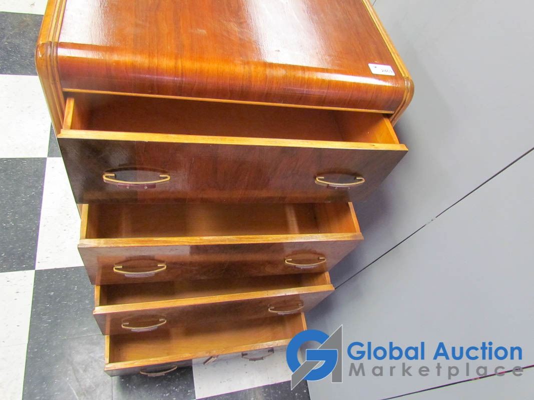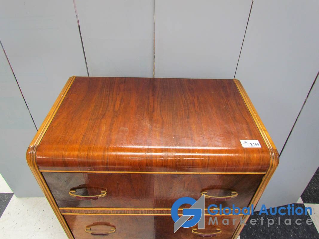 Waterfall Front; Dovetail Drawers; 4 Drawers; Original Hardware; Minor Wear & Scratches