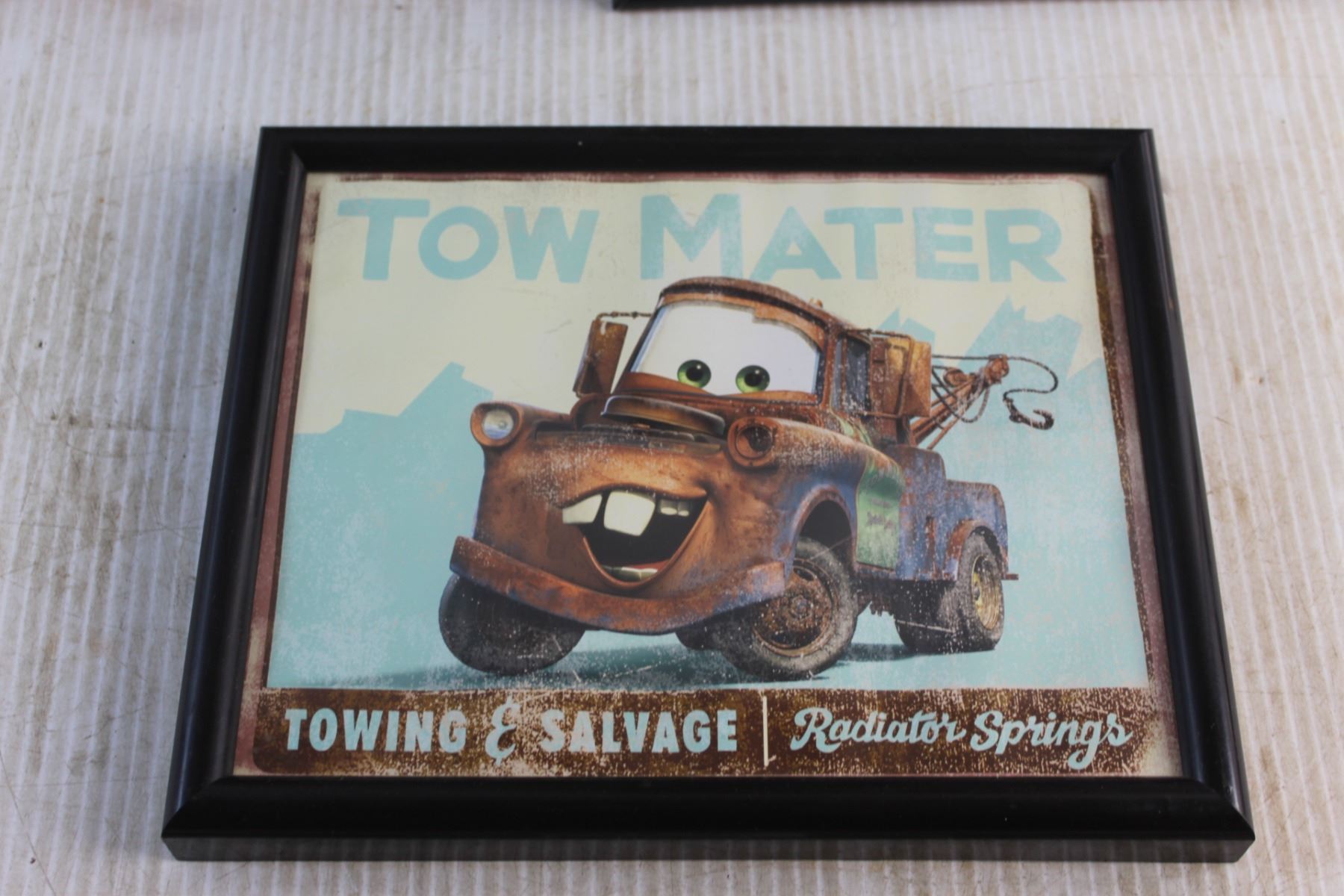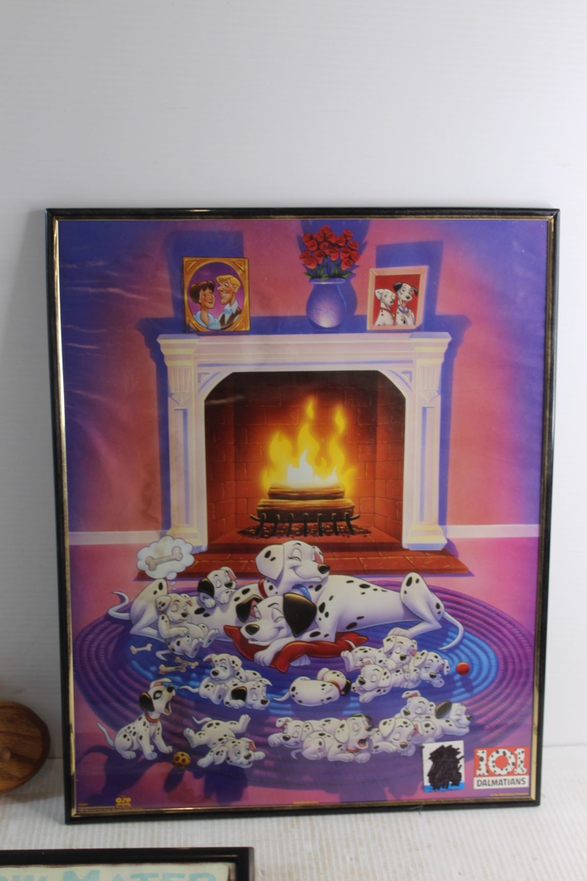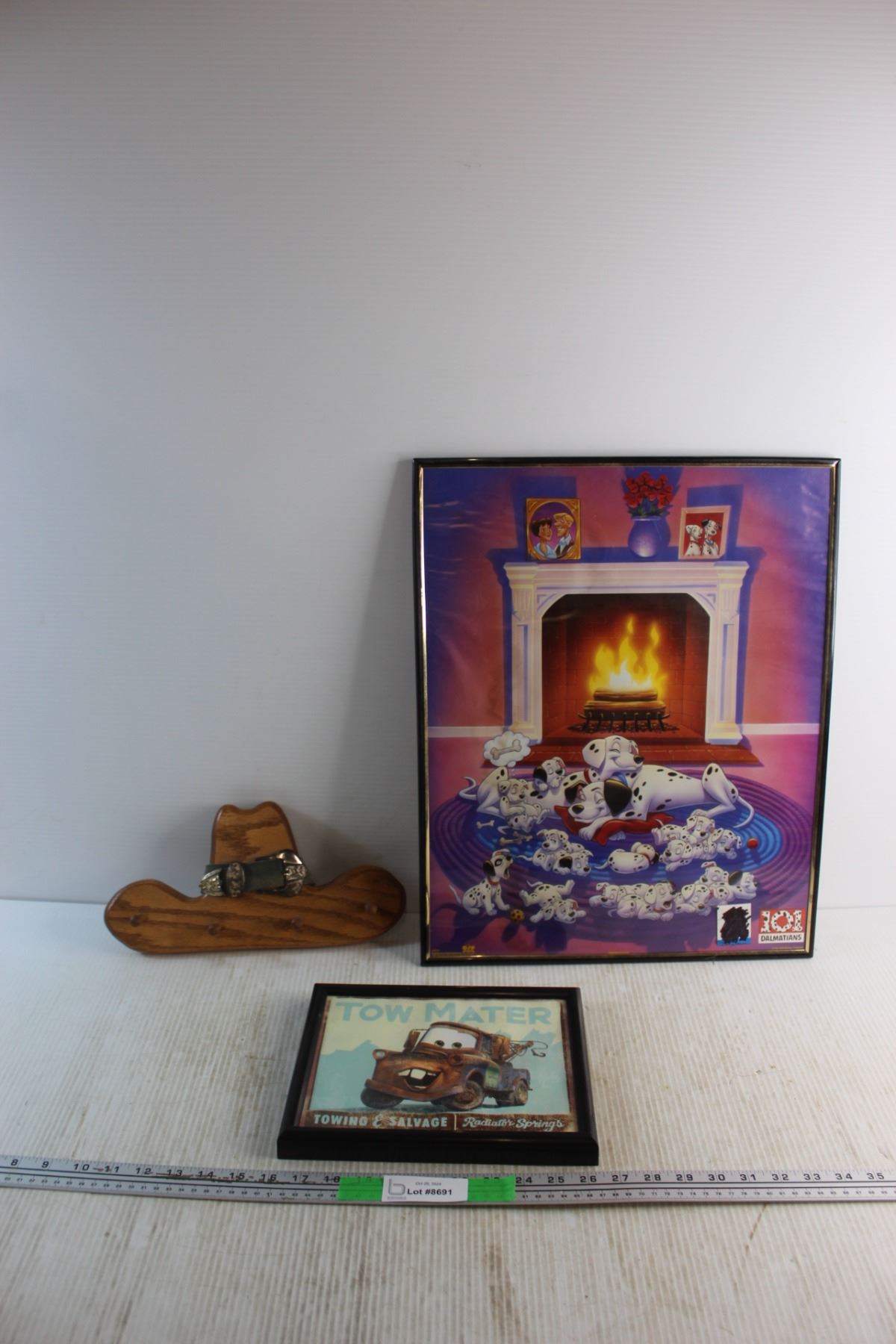 Wooden Coat Rack and Framed Prints - 101 Dalmatians and Tow Mater 20'' x 16'' & 10'' x 8''