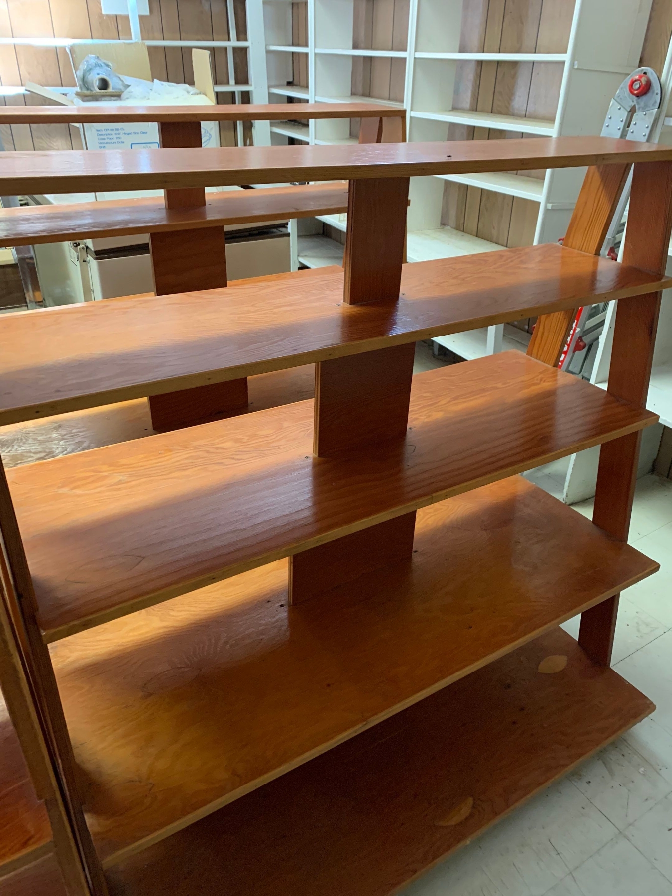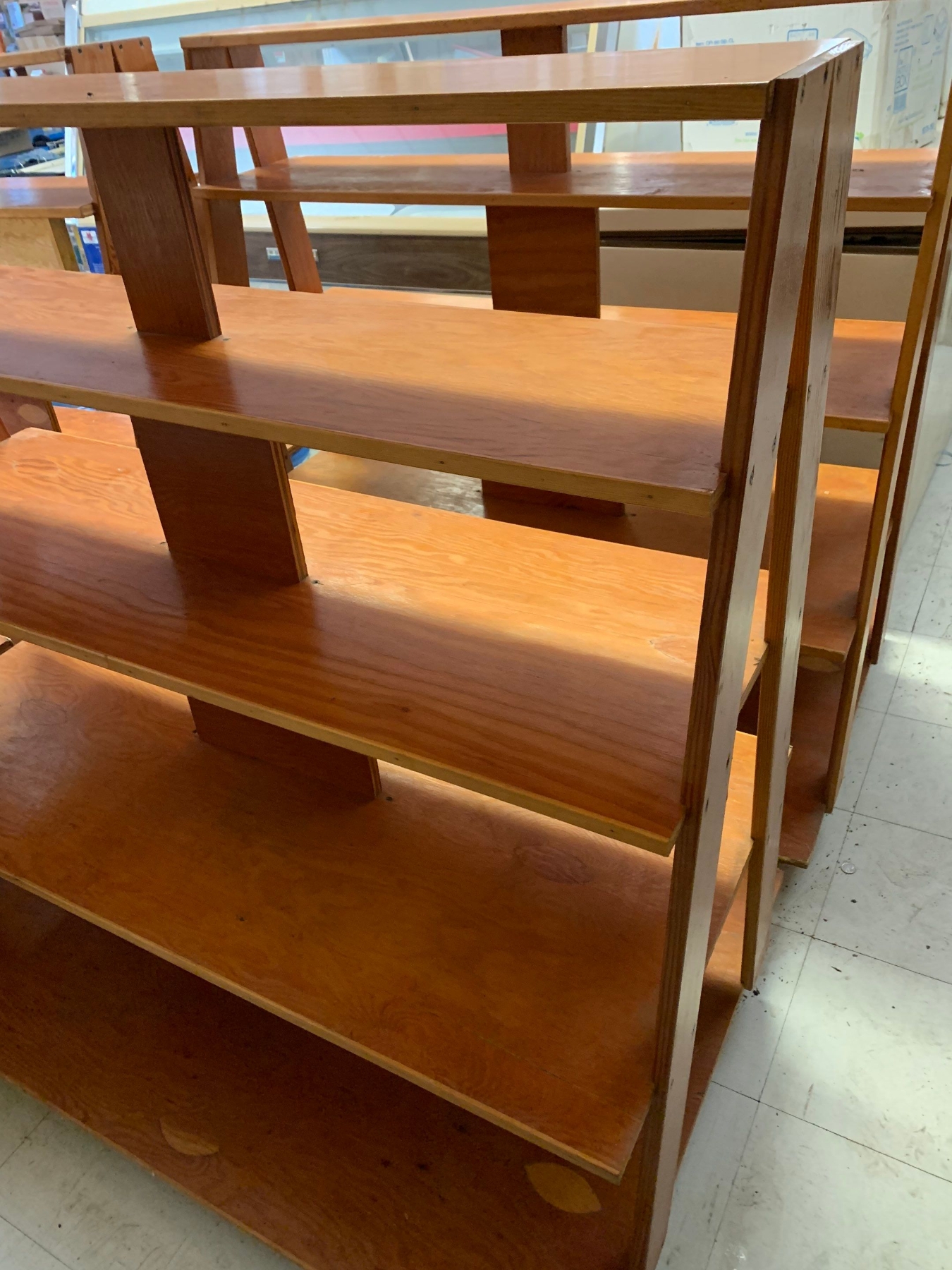 Wooden Commercial shelf Measuring 50”T, 49”L, 33”W
