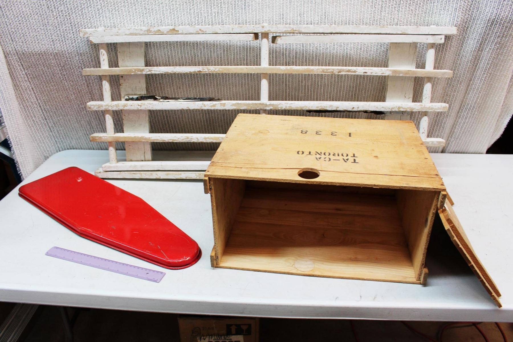 Wooden Crate, Wooden Stand and Child's Ironing Board