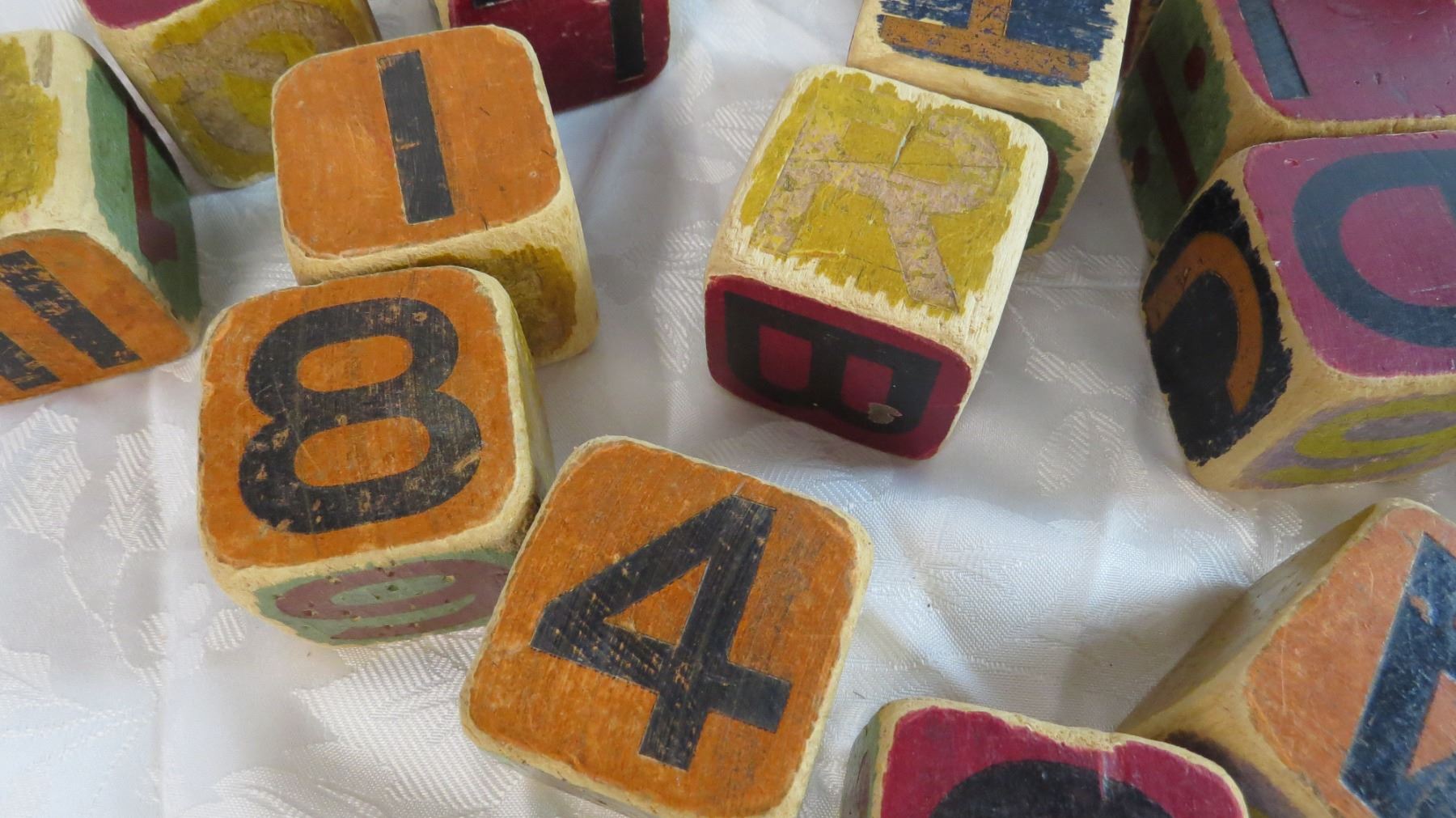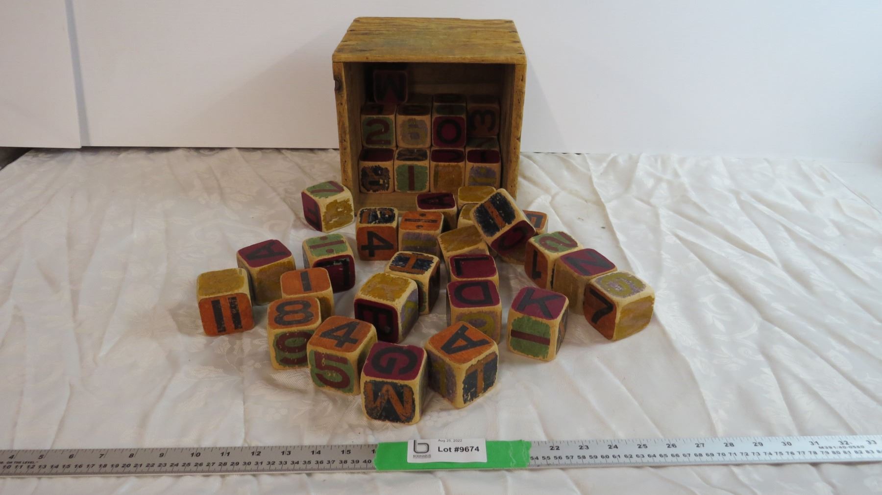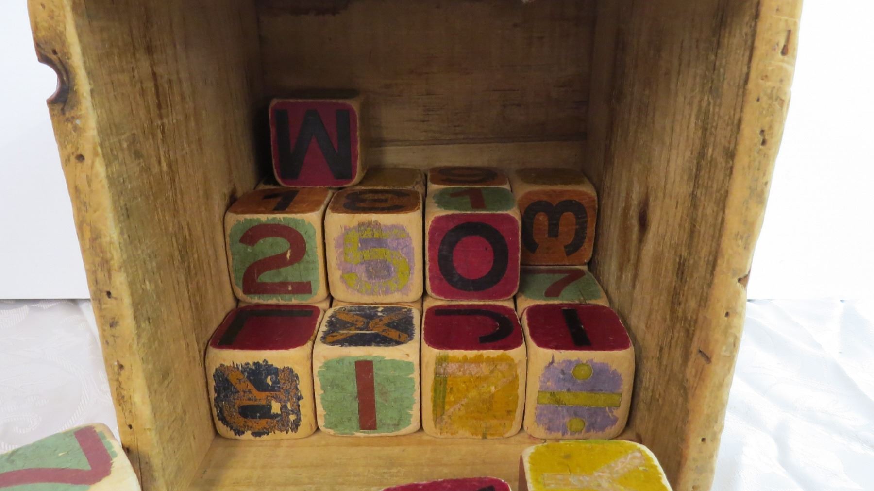 Wooden Crate filled with Wooden Letter and Number learning blocks