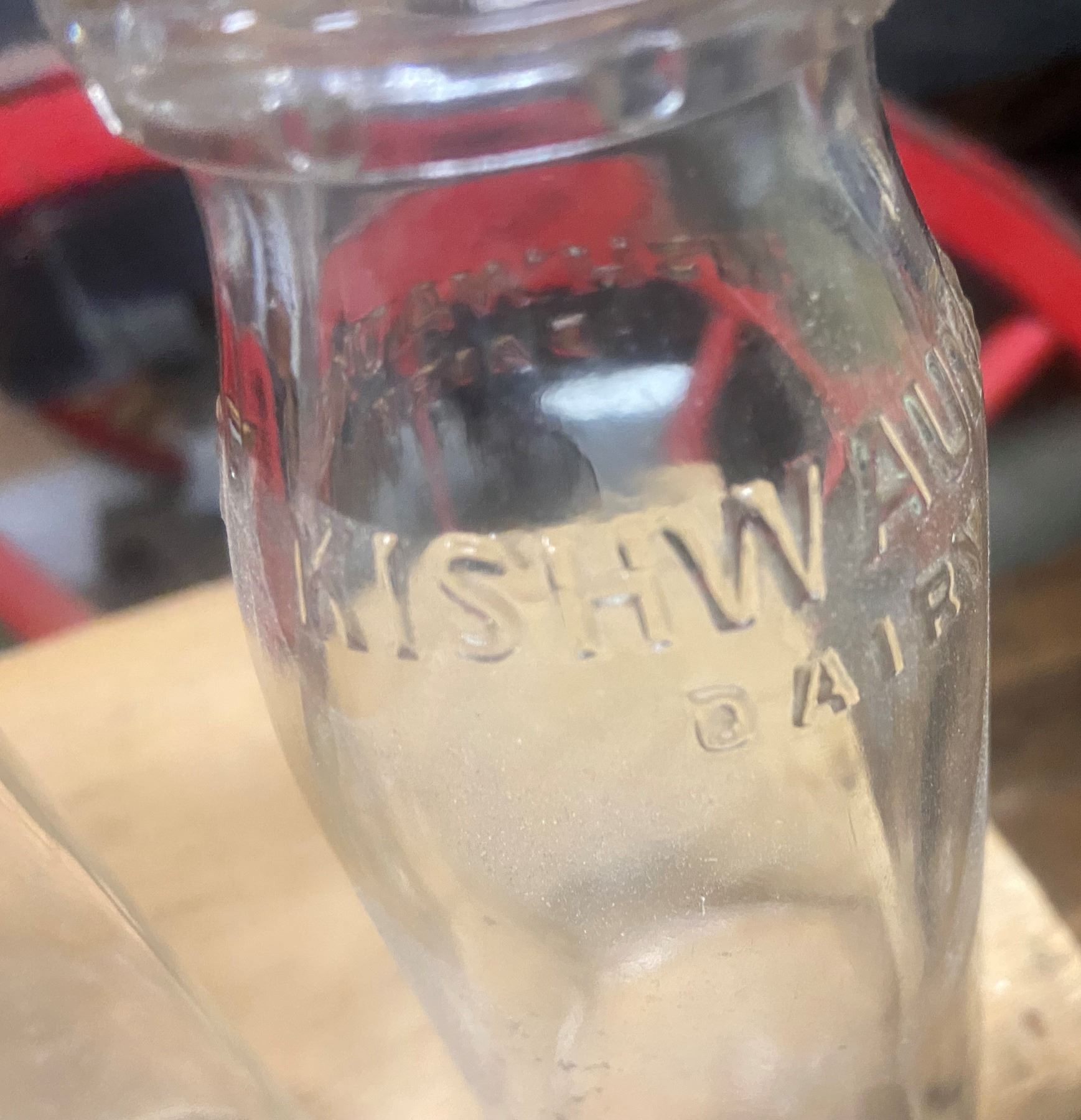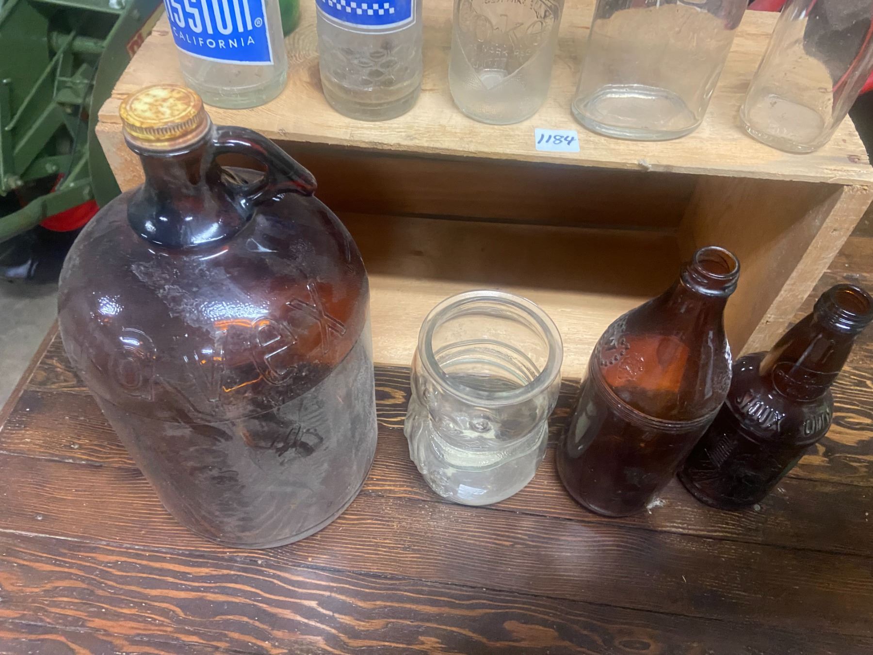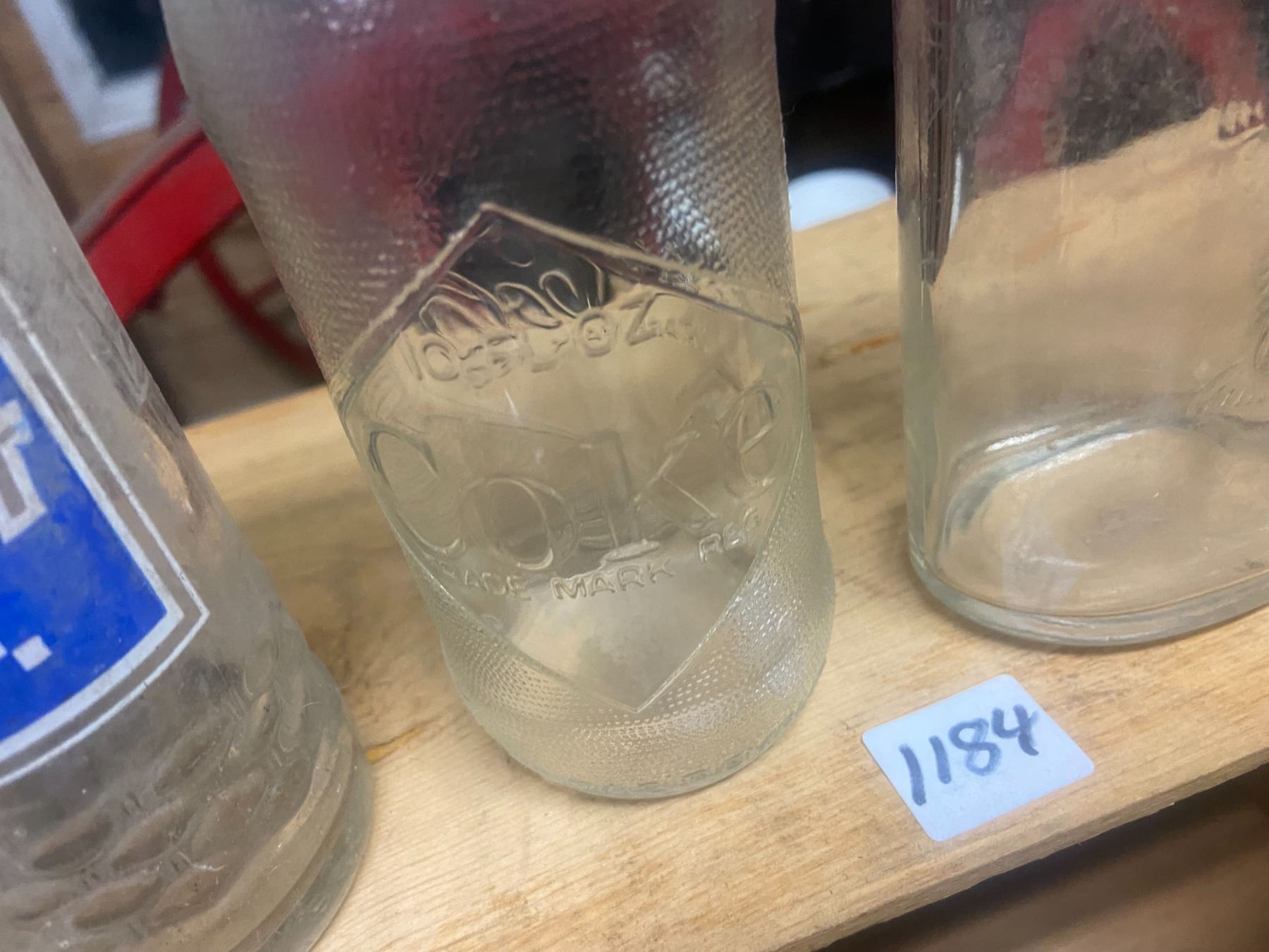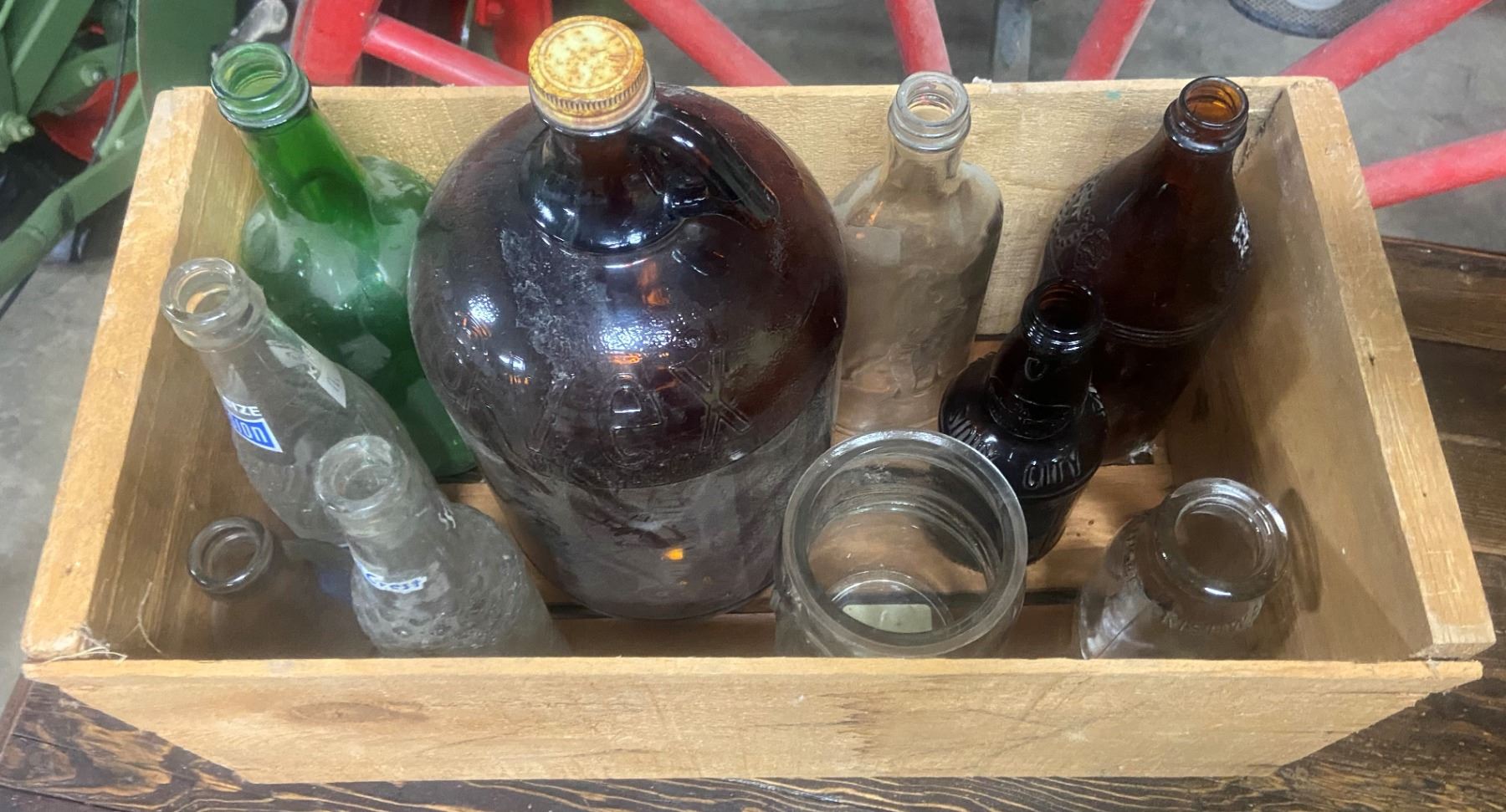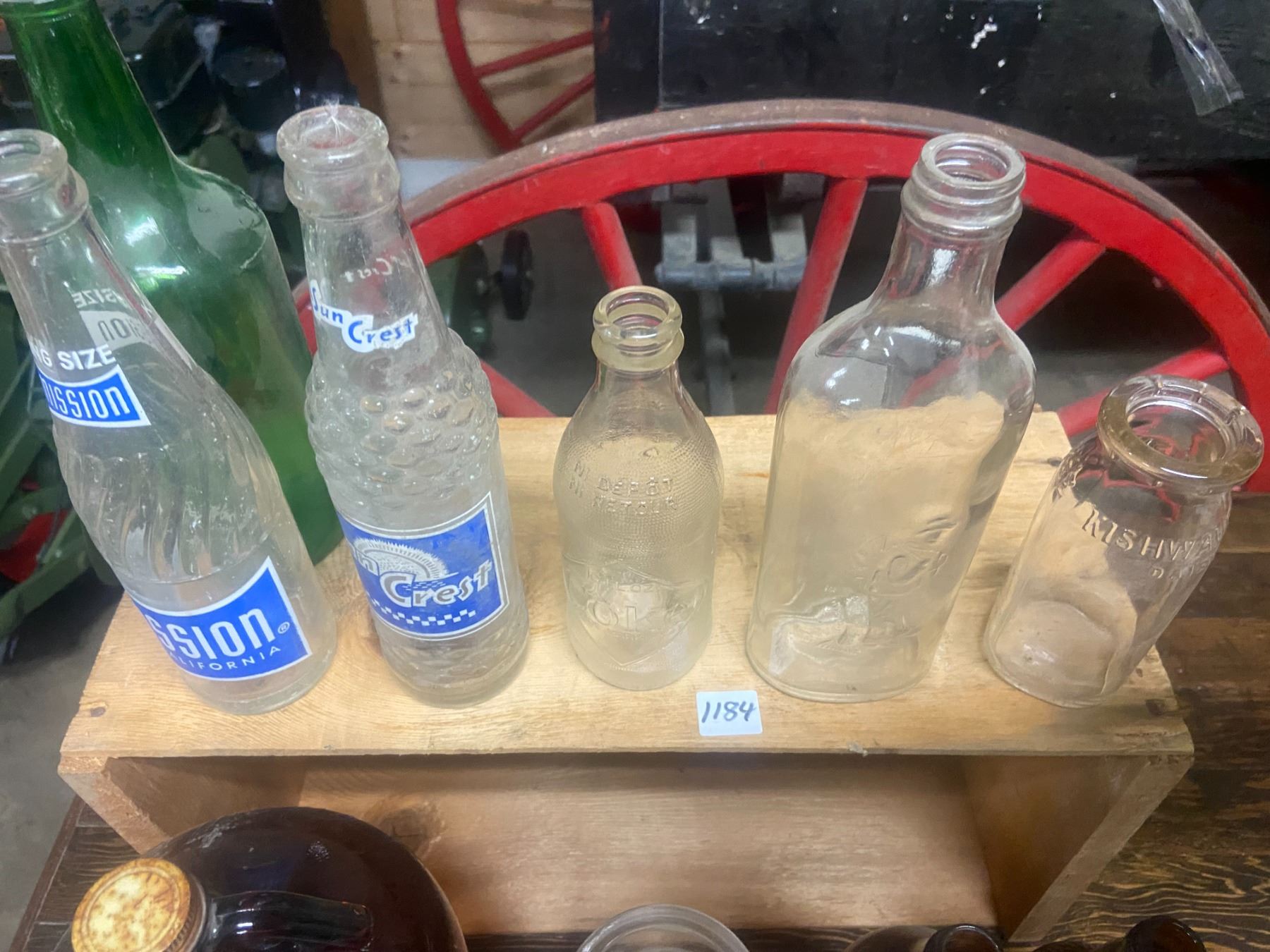 Wooden Crate of 10 Collector bottles, Coke, Mission, Suncrest, Kish Waukee Milk, etc.