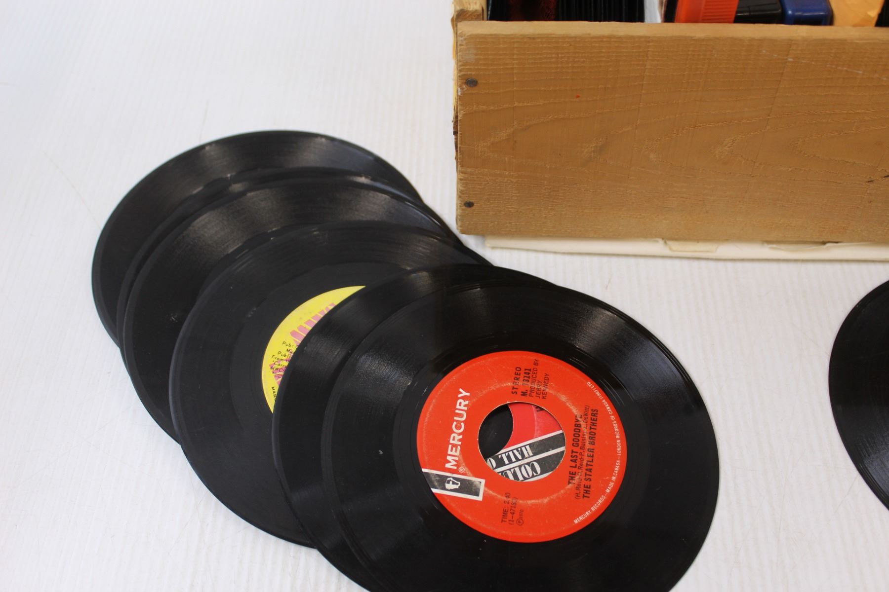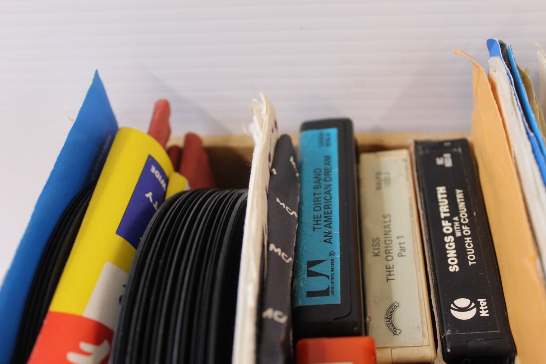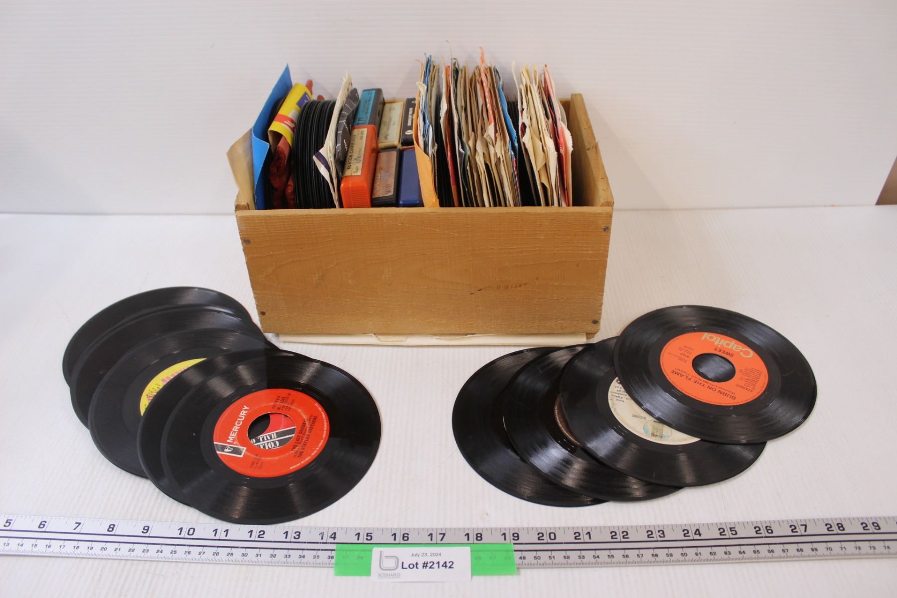 Wooden Crate w/Assorted 45's & 8-Tracks