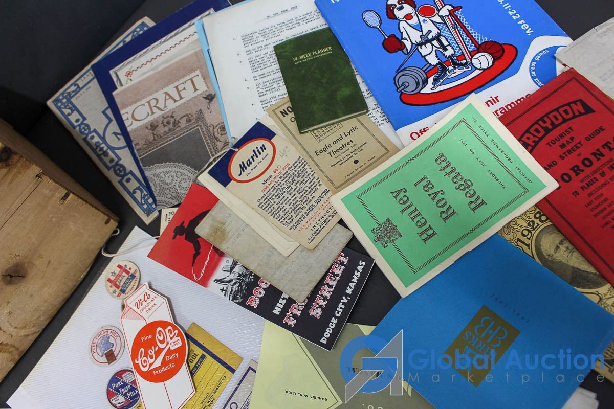 Wooden Crate w/Assorted Vintage Brochures, Maps, etc