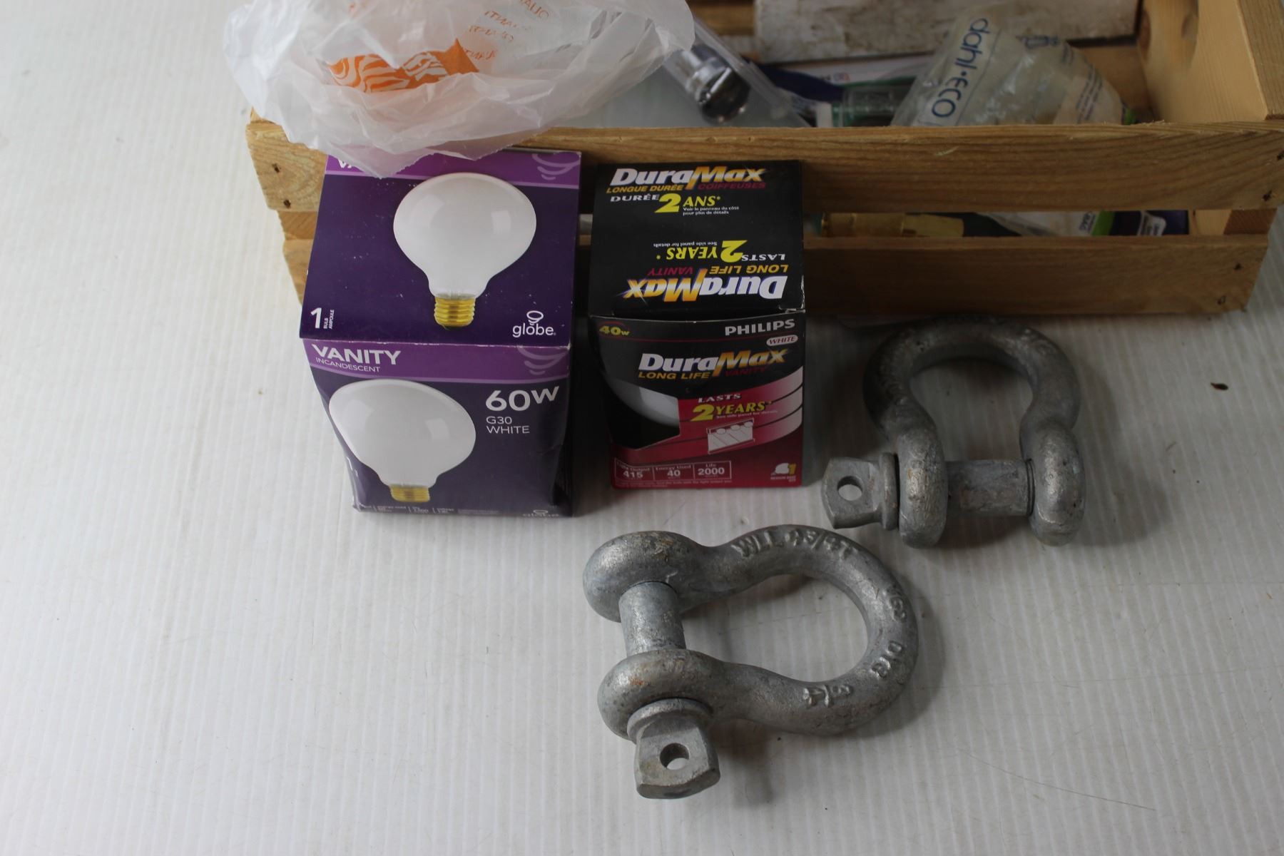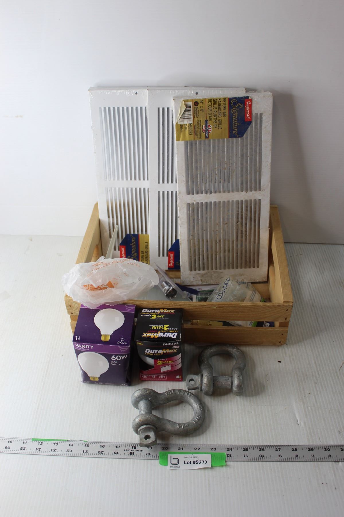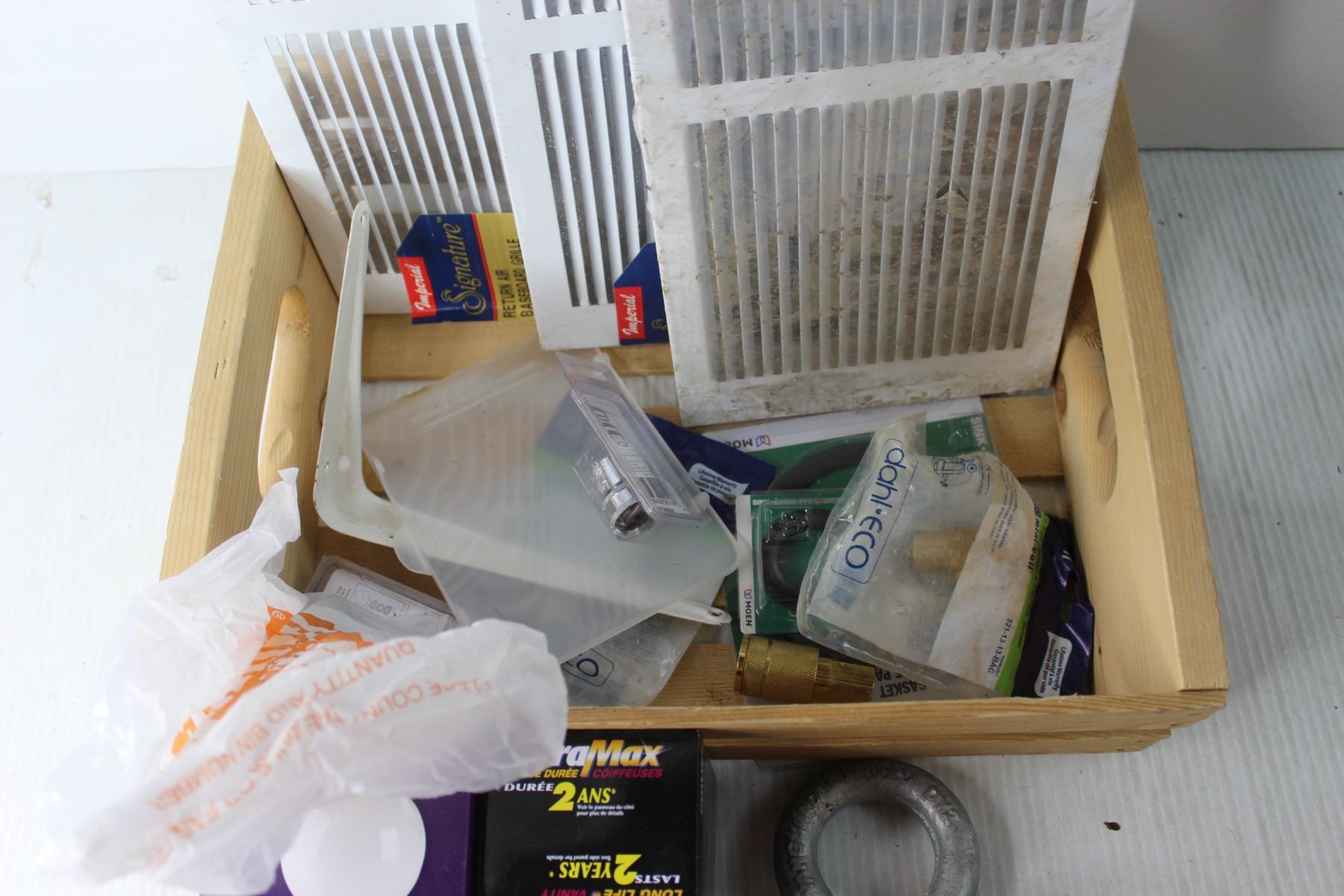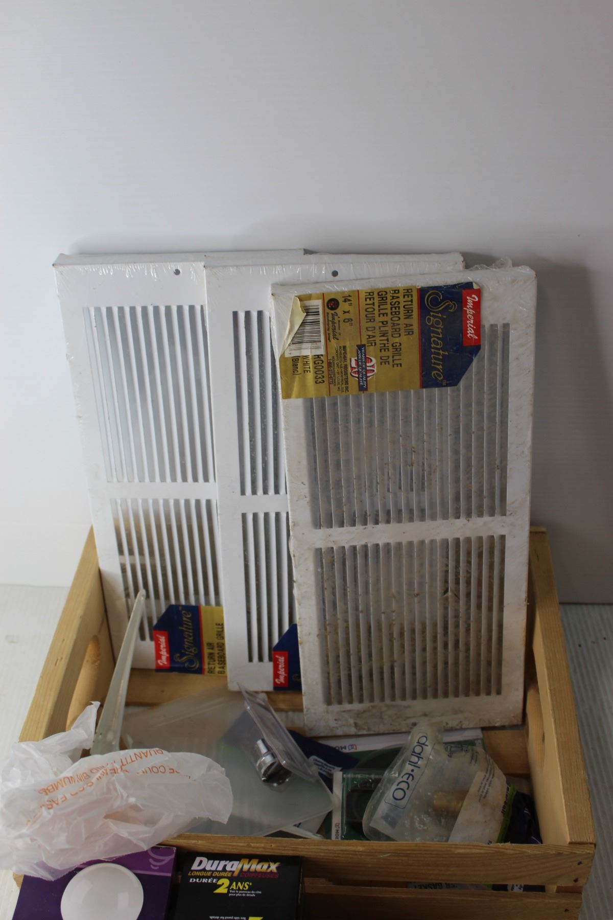 Wooden Crate with Air Grills, Lightbulbs and Misc
