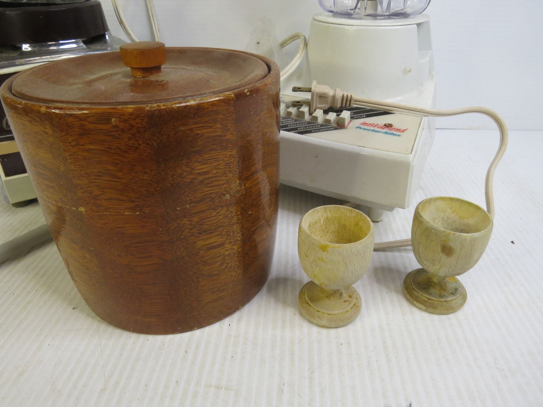 Wooden Crates (2) Blenders (untested) - Wooden Jar & Egg Cups