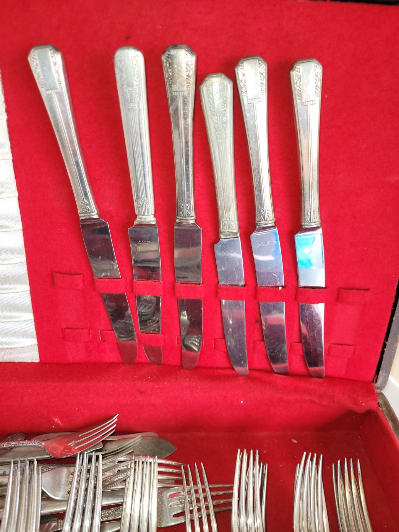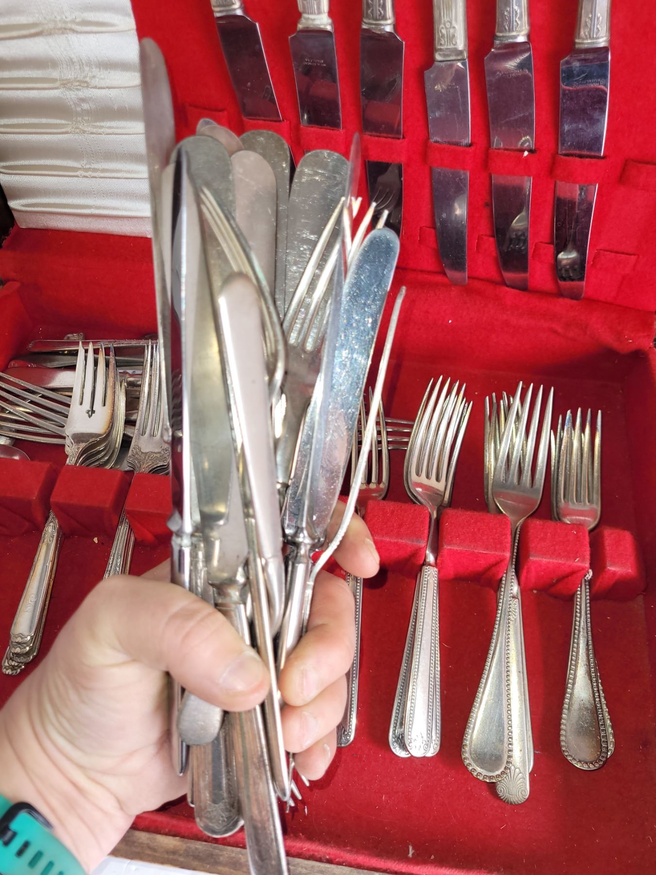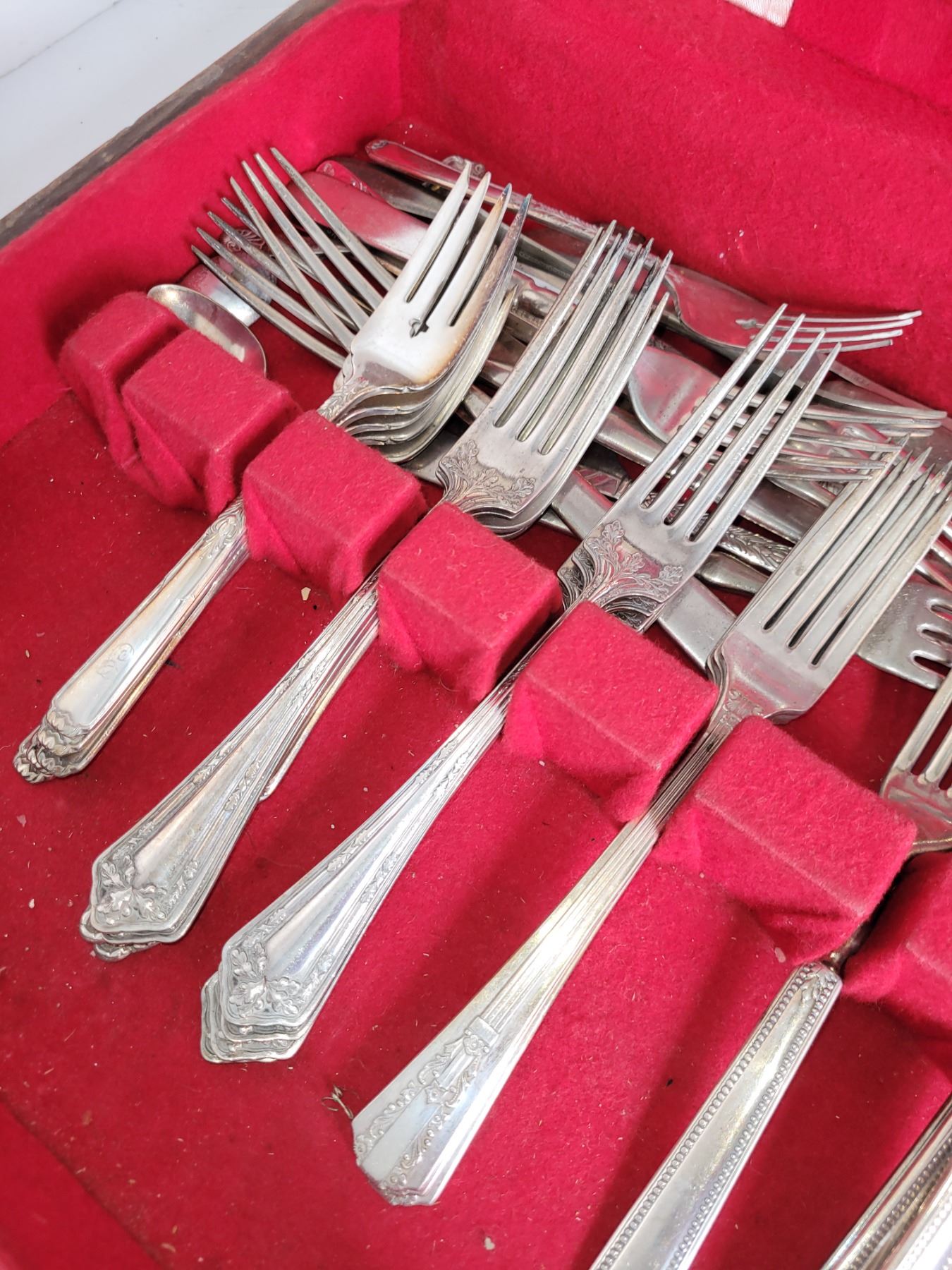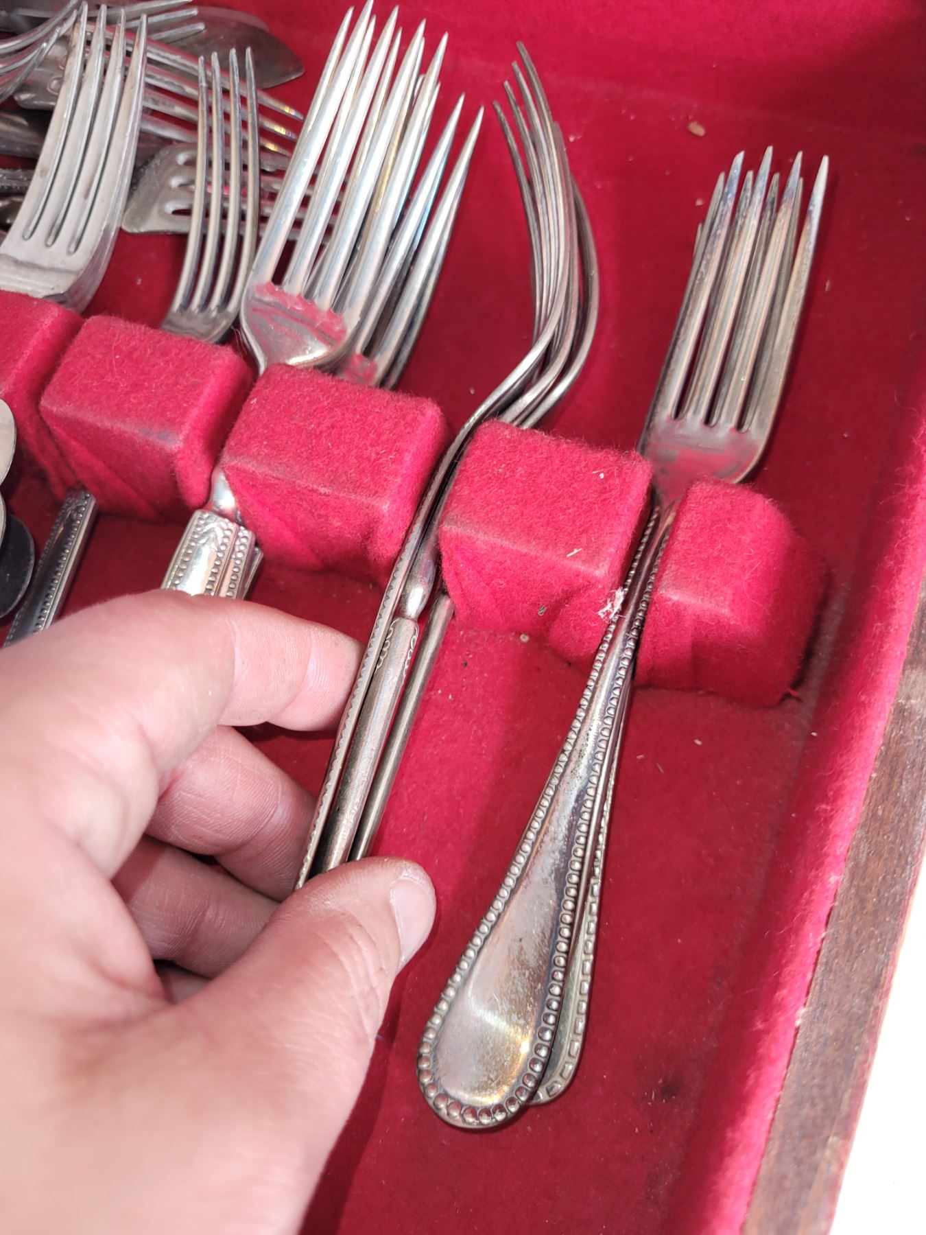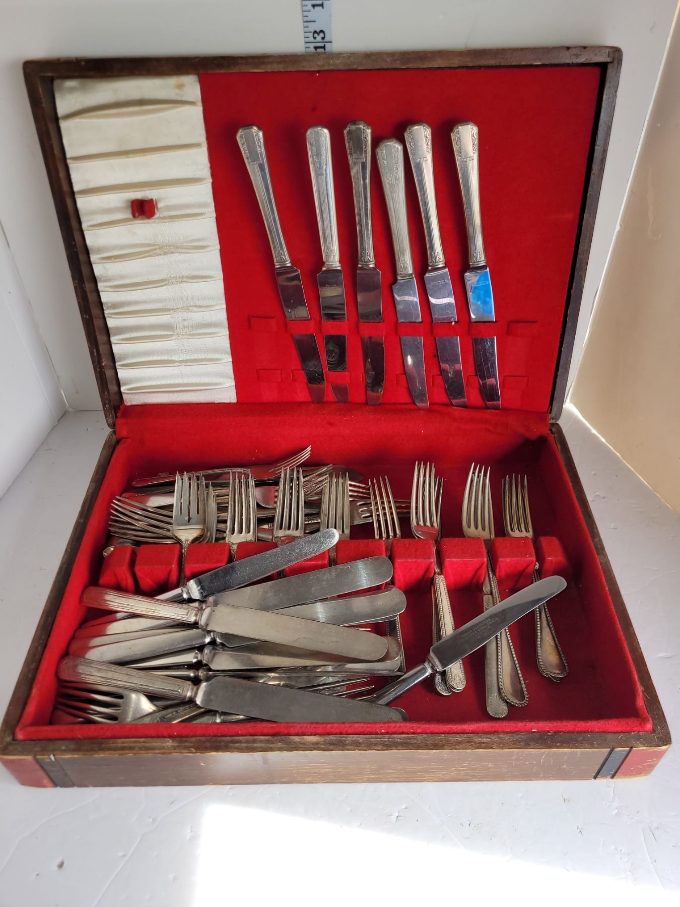 Wooden Cutlery Box - Mixed Cutlery - Wm Rogers, Oneida +