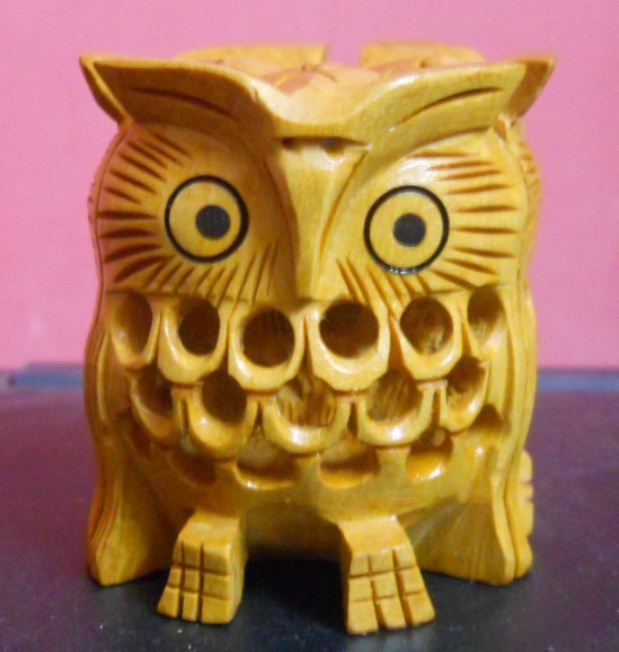 Wooden Decorative Three Cut Owl With Baby Inside