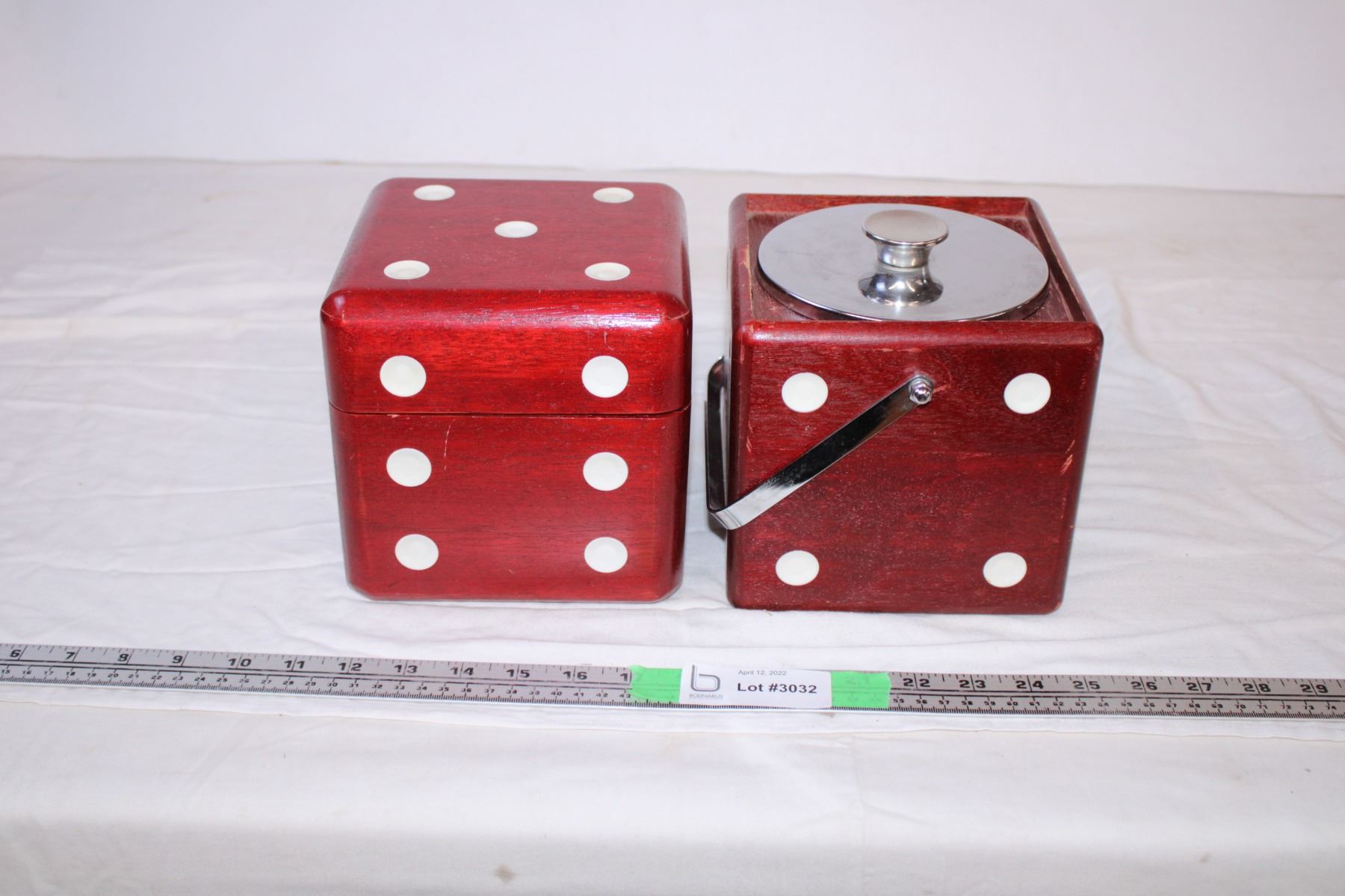 Wooden Dice Cube, Ice Bucket and Liquor Set