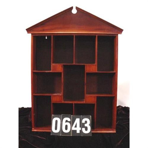 An unmarked display case for small dolls or any other items. Case is in very nice condition with no large damage. Example compartment size is 7.5" 4.5" x 3.5". And has 11 compartments total. The case itself is 26 inches tall, 17.5 inches wide, and nearly 4 inches deep. And it weighs 6 lbs 5 oz before packaging. [81]