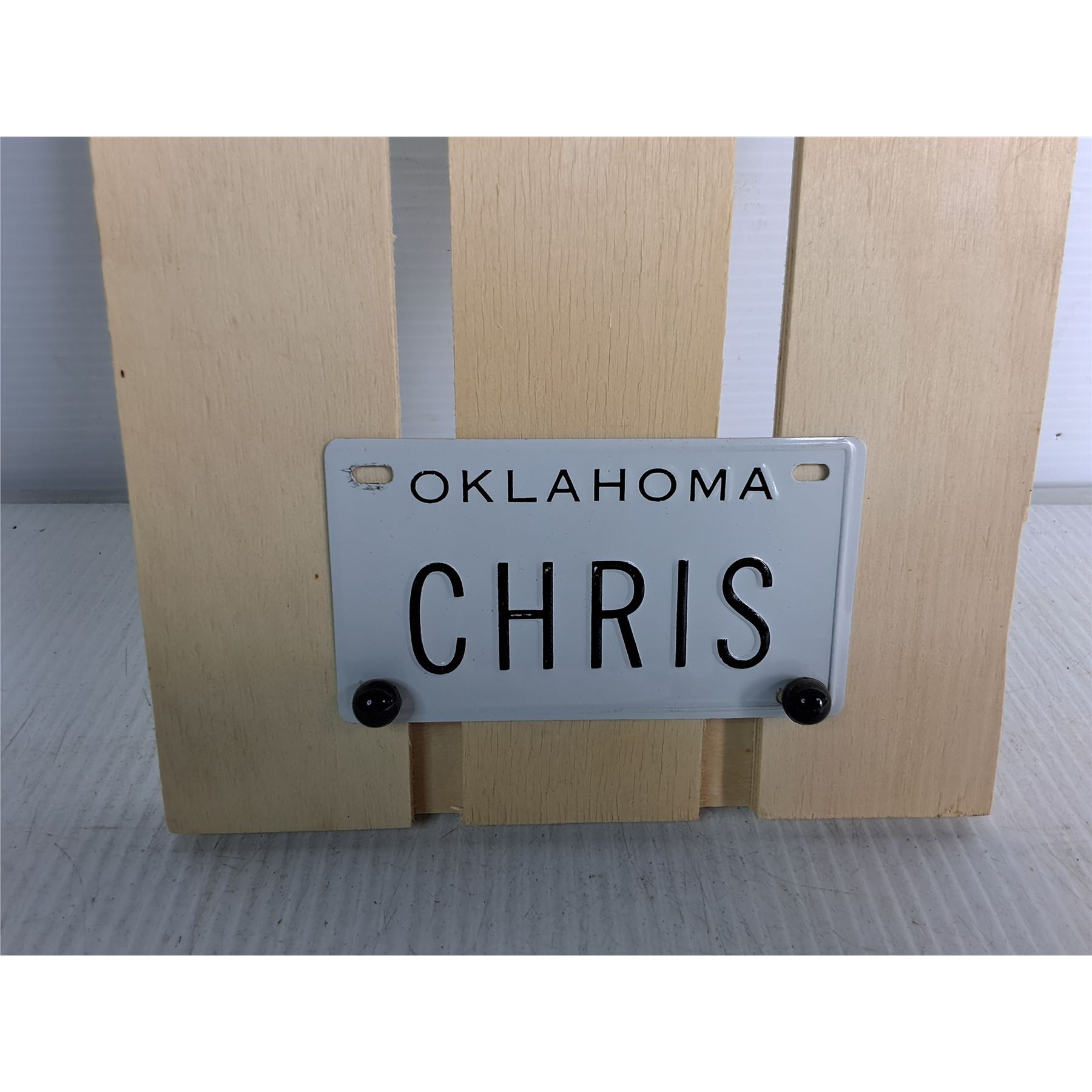 Wooden Display Of Miniature Licence Plate 7" By 14"