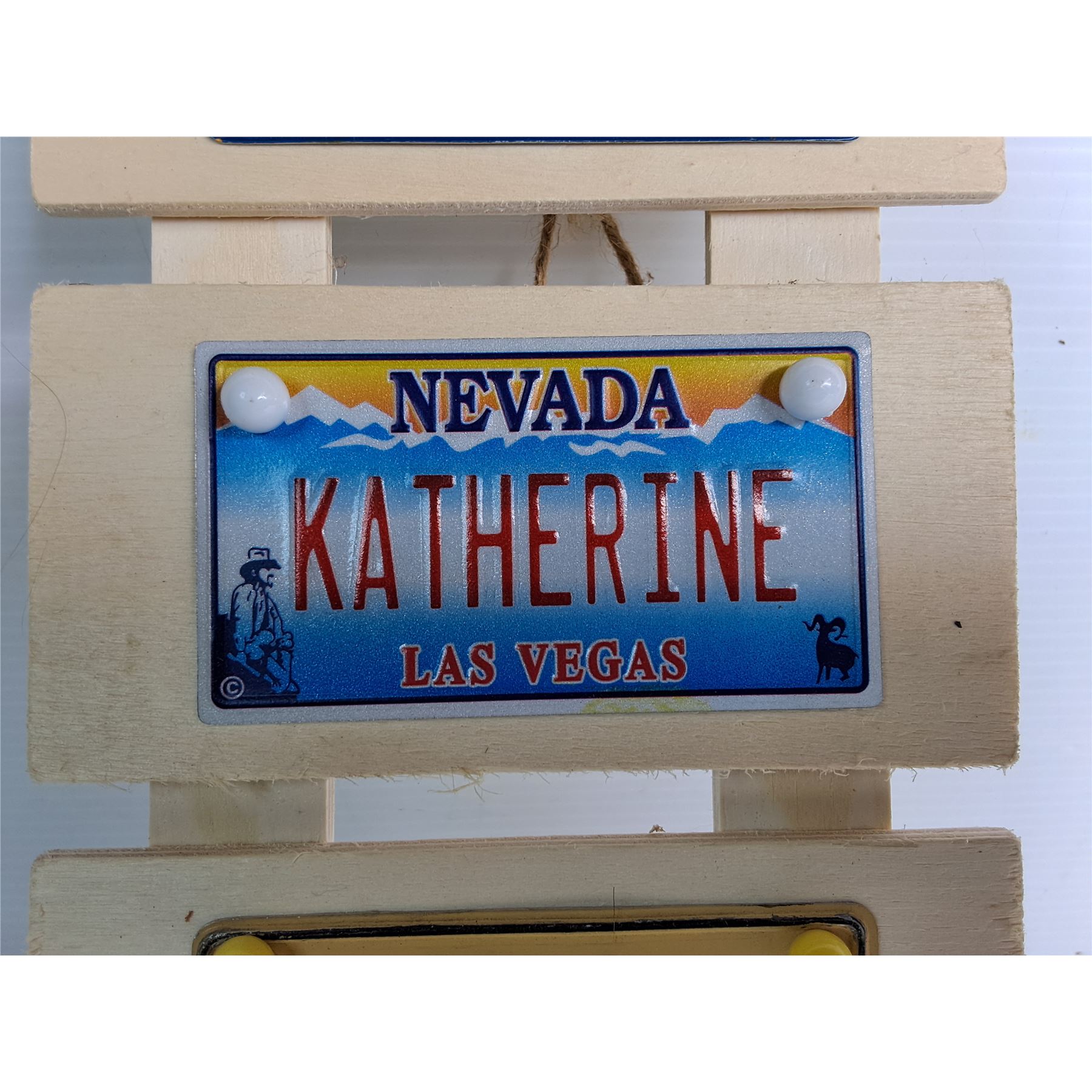 Wooden Display of Miniature Metal Licence Plates 6" By 13"
