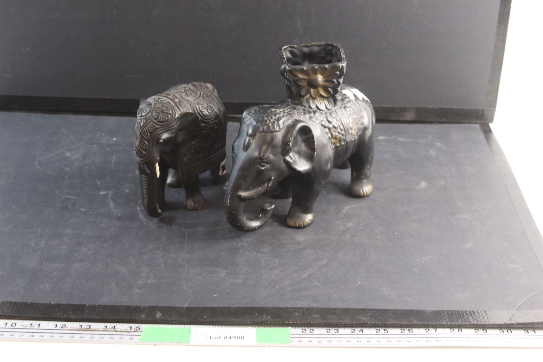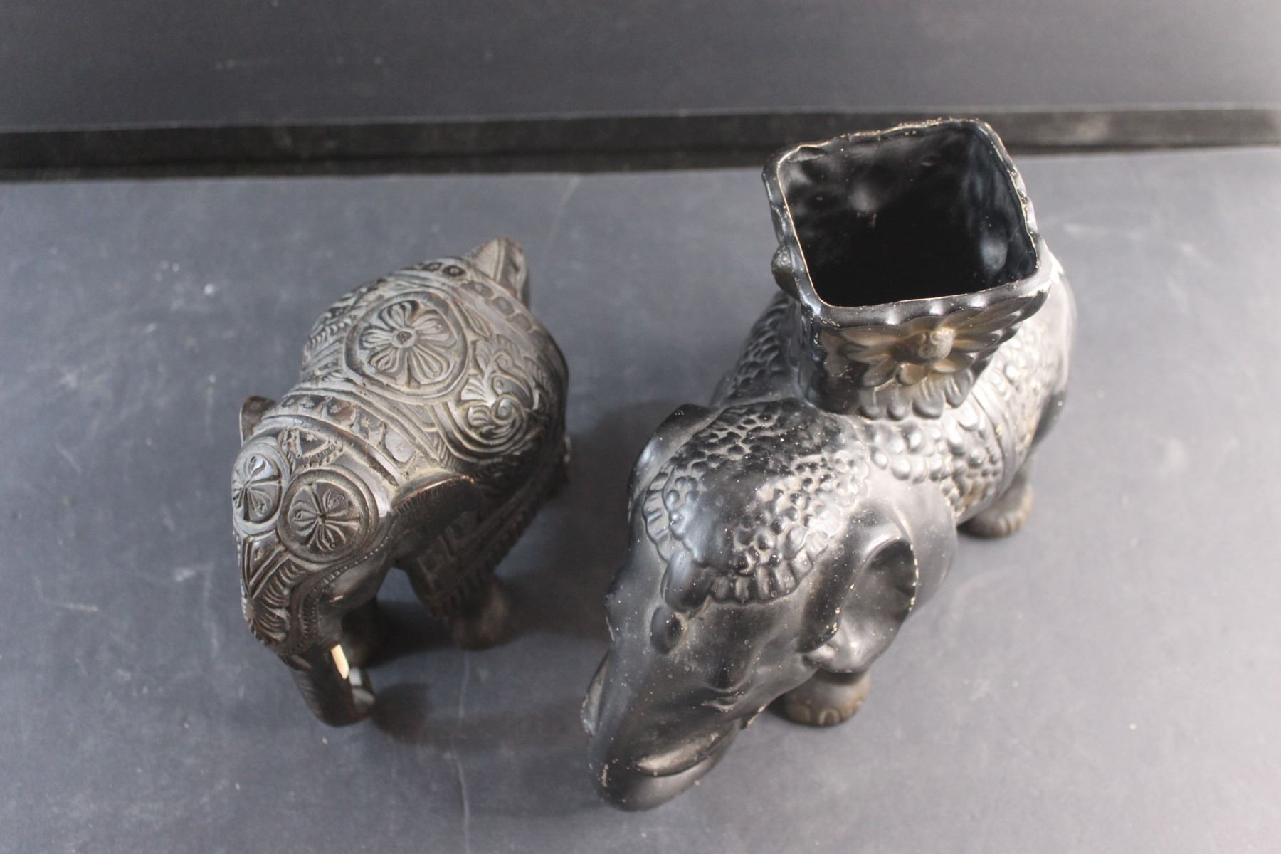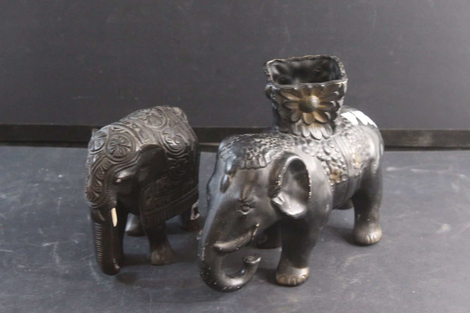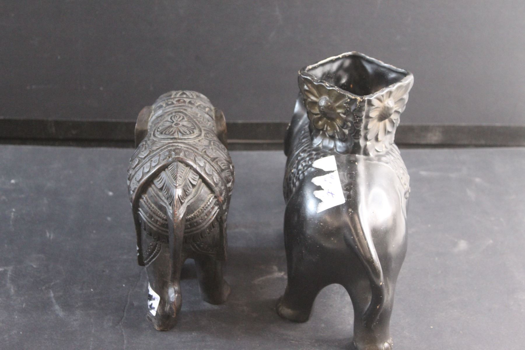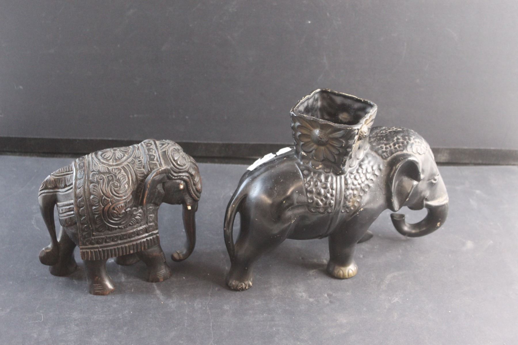 Wooden Elephant Figure and a Ceramic Planter