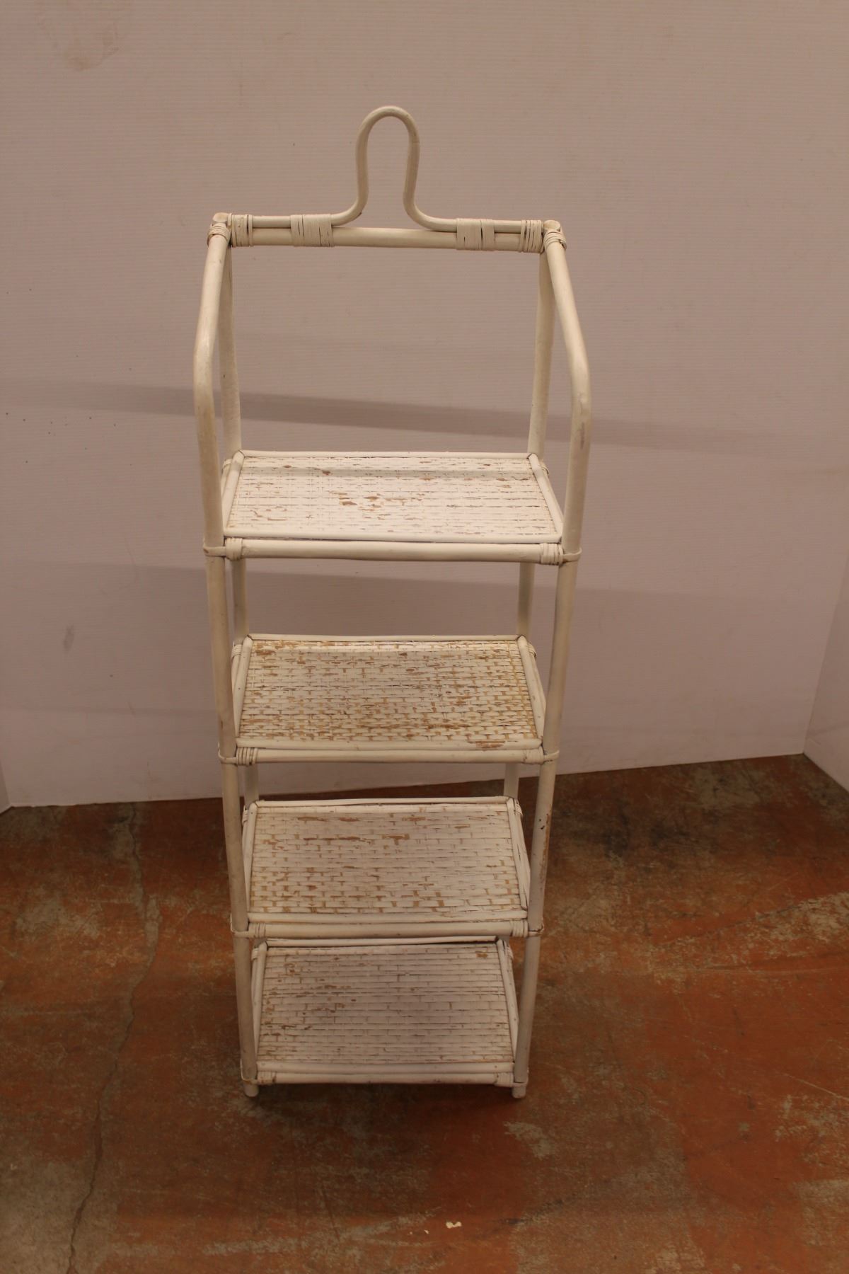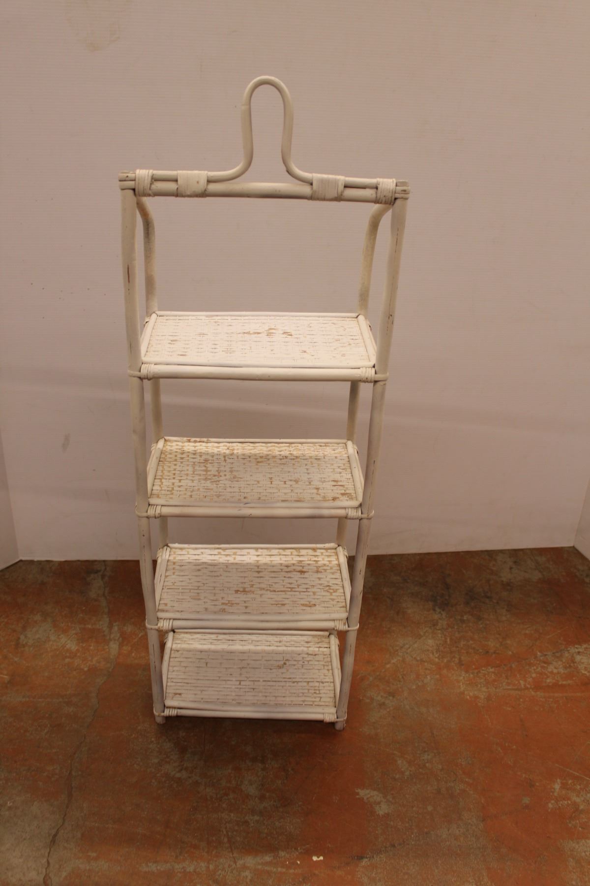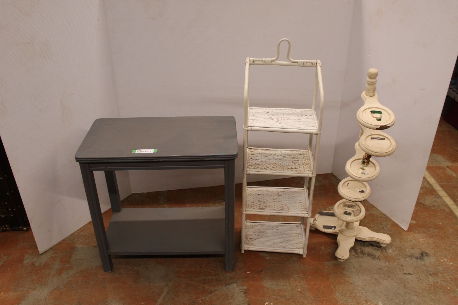 * Wooden End Table, Wicker Shelf Unit, Wooden Plant Stand
