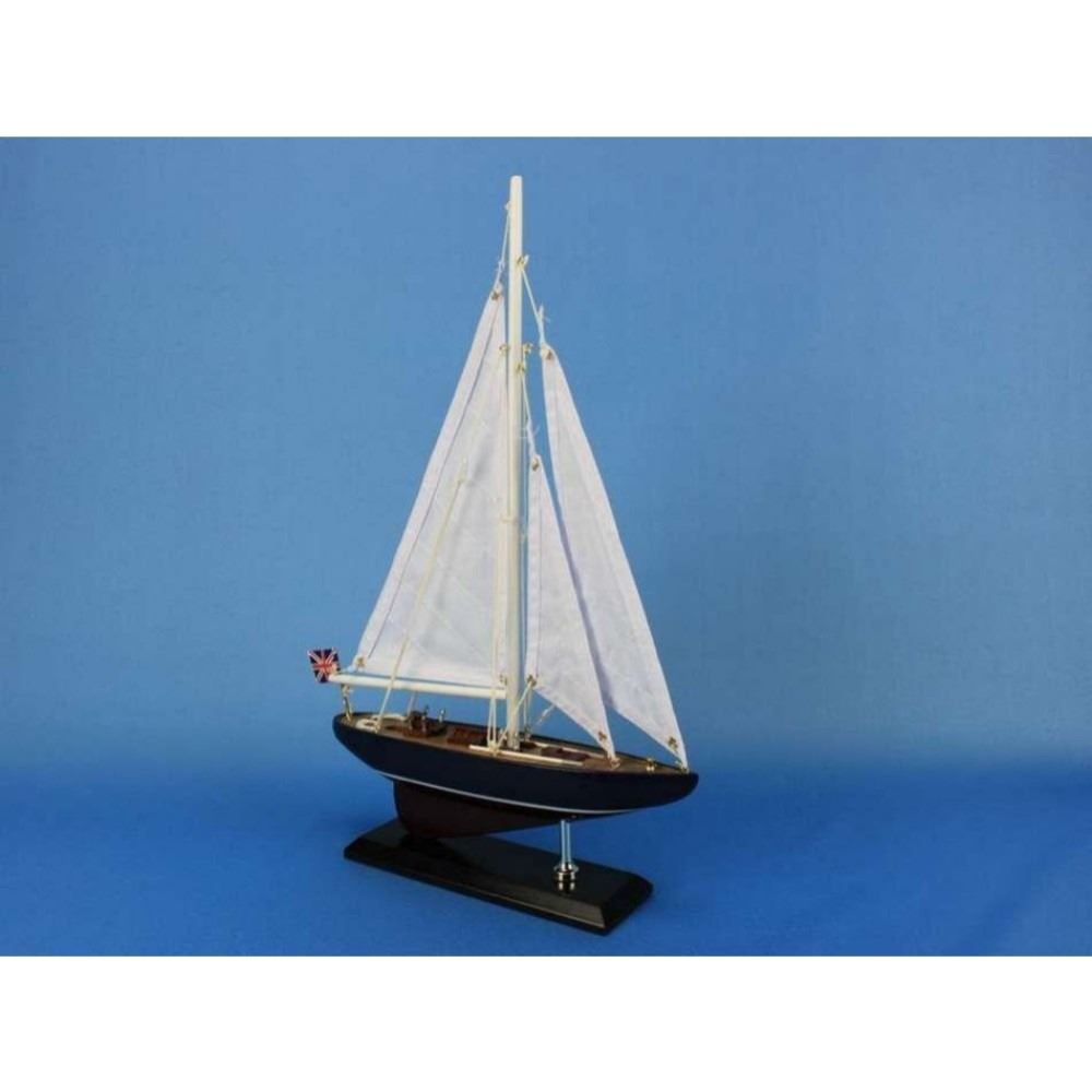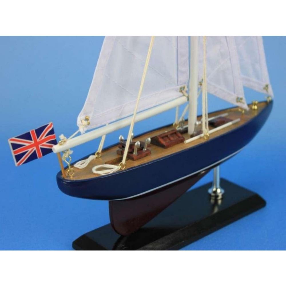 Wooden Endeavour Model Sailboat Decoration 16" NOT A MODEL SHIP KIT   Attach Sails and this Sailboat Centerpiece is Ready for Immediate Display  Brighten your day, or any room of your home, with this delightfully fun Endeavour model. Perfect nautical decor gifts for friends, children, or party guests, they also make excellent nautical decorations or sailboat centerpieces for a reception or group event. Liven your office, beach house, or sunroom with one of these colorful sailboat models today! Handcrafted solid wood hull, masts and stand with metal supports Largest sailboat selection available - We offer over 150 unique model sailboats Featured in Sept 2011 Brides magazine - Excellent wedding table centerpiece Perfect nautical gift for friends, children or party guests Ideal for banquets, receptions, meetings, or any other nautical party or eventÂ