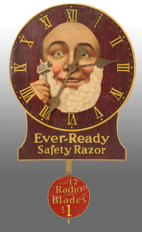 Circa 1900. Beautiful clock with strong gold highlights, wonderful wood graining and strong overall condition. Complete with original marked pendulum. Only light soiling, minor marks and minimal crazing or wear. Displays wonderfully. Advertising Display Condition (9.5+, Excellent). Size 27" x 18".