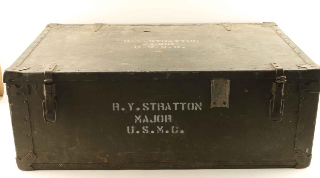 Wooden foot locker marked R Y Stratton, Major, USMC