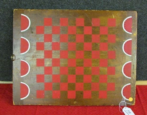 Mid-1800's wooden Game Board (Checkers) with bread board ends painted in original colors and decoration.