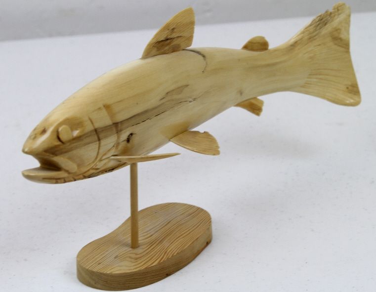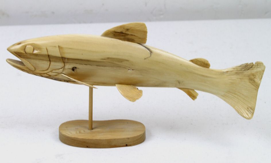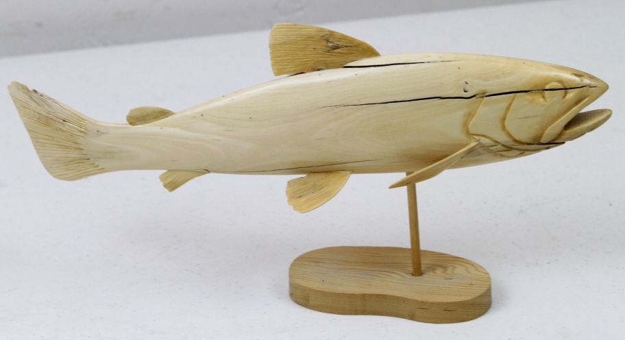 Wooden Hand Carved Fish This is made with great detail. The Fins on this fish are made of wood and are incredibly thin. Measures 1'