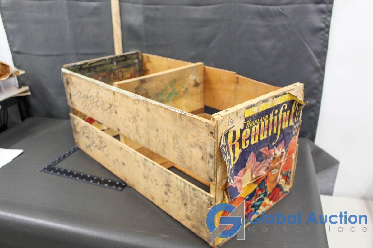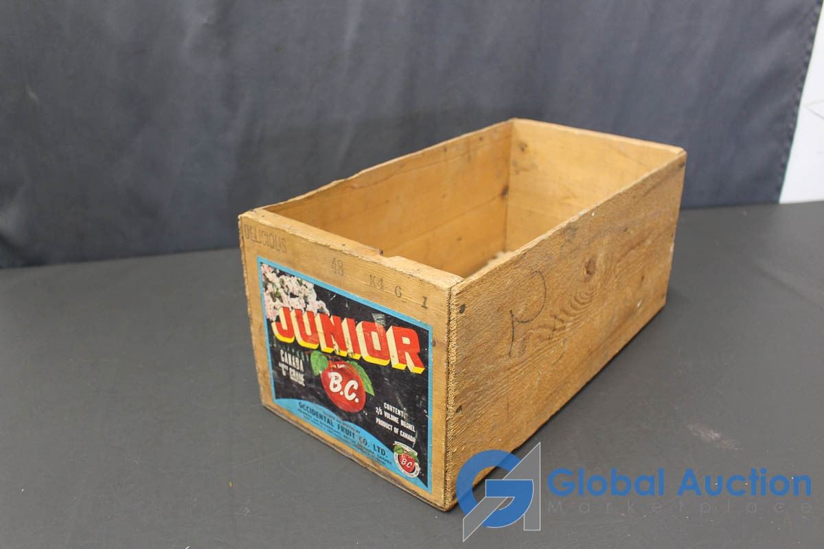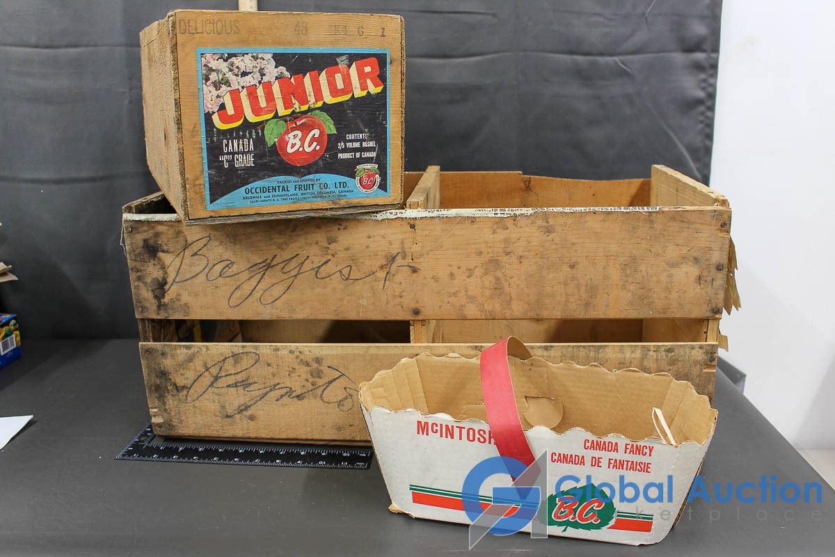 Wooden Highland Beautiful Orange Crate, Wooden Junior B.C. Apple Crate, & Mcintosh B.C. Apple 4L App