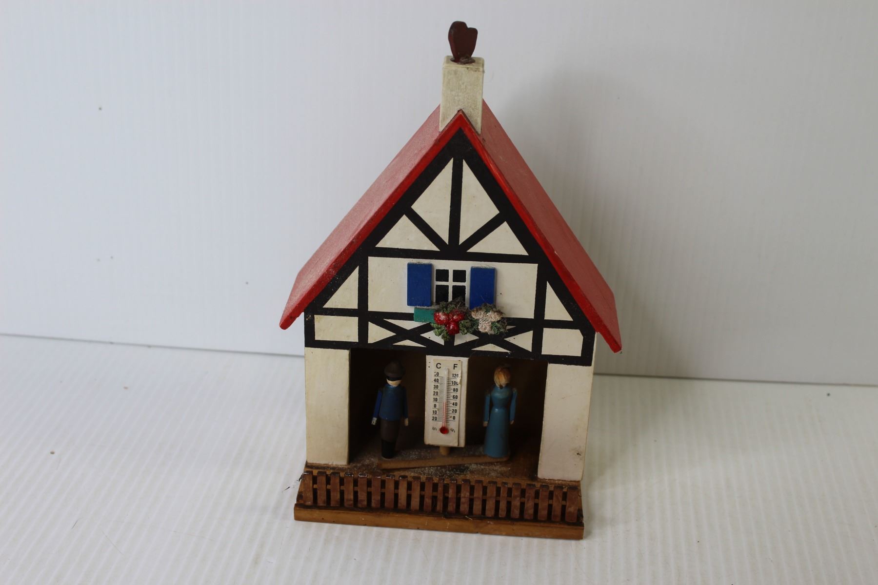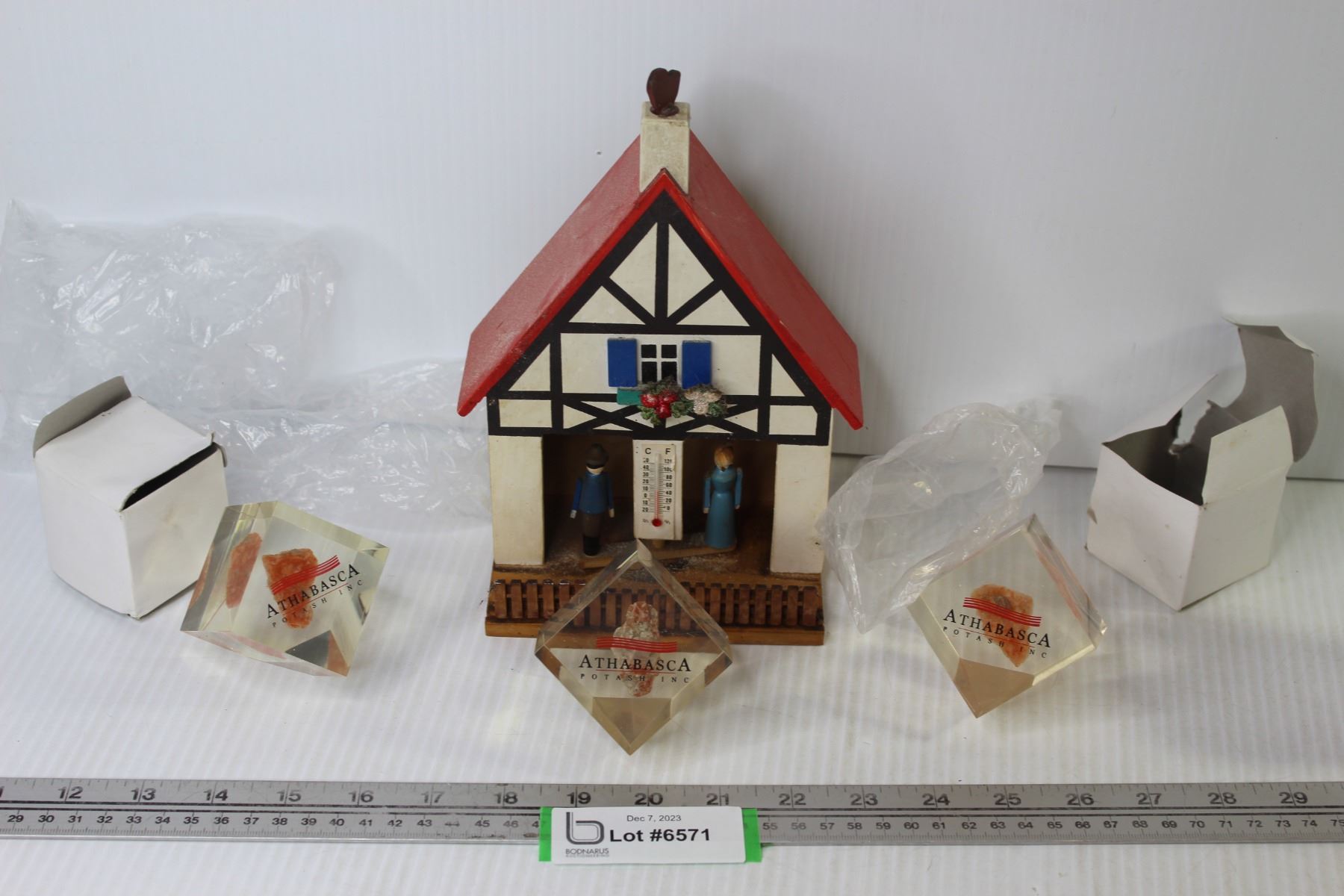 Wooden House Thermometer - (3) Potash Rocks in Glass Blocks