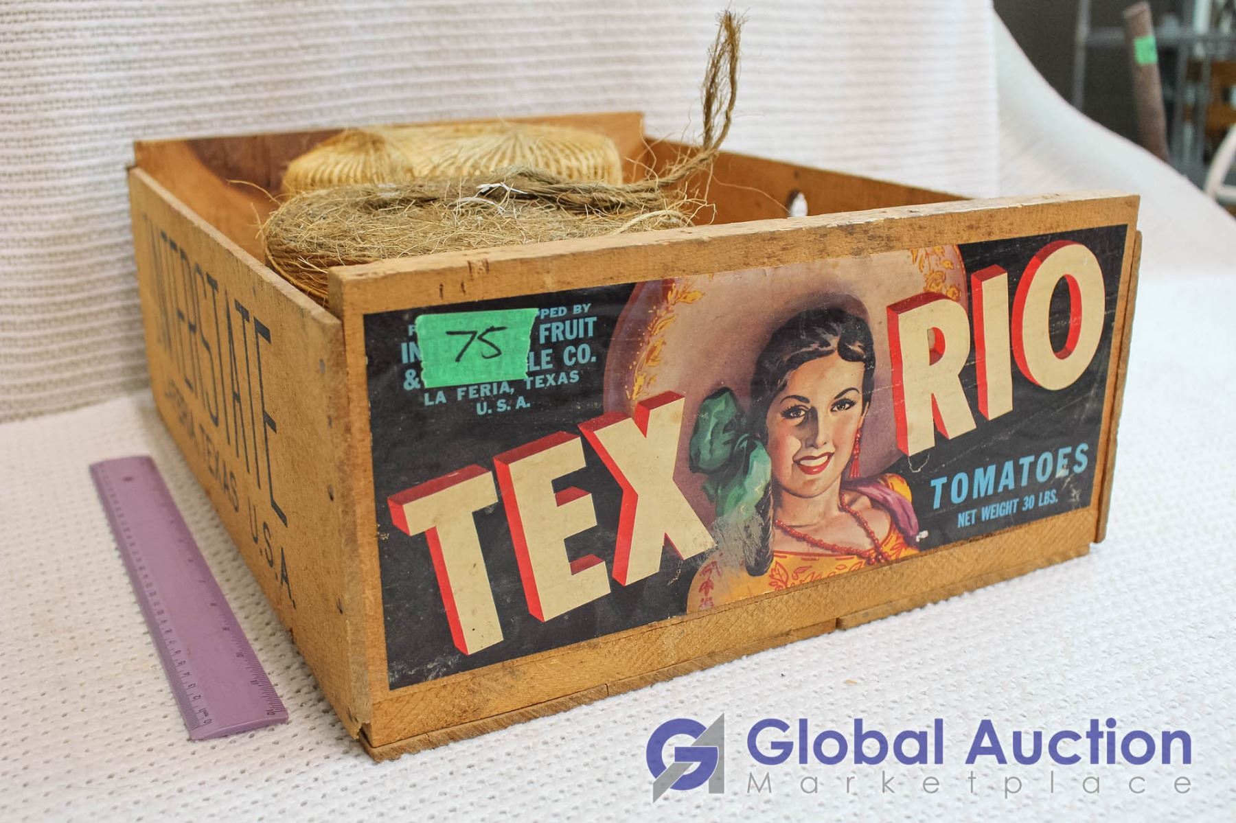 Wooden Interstate Tomato Crate & 2 Balls of Binder Twine