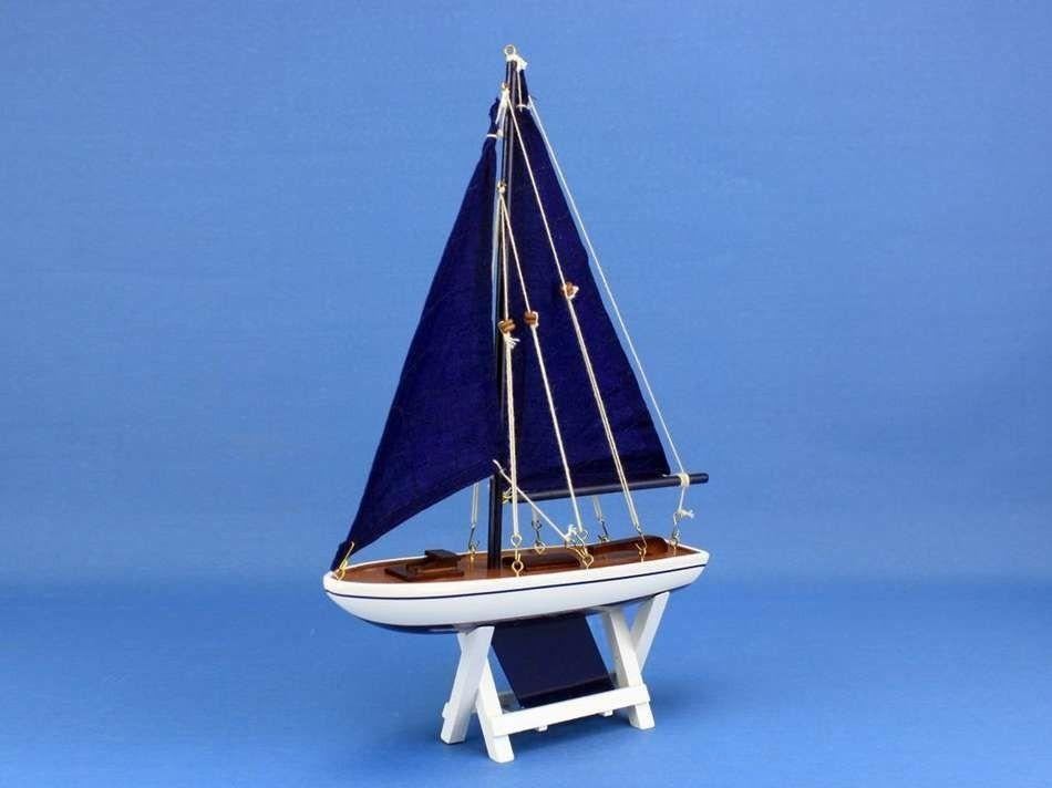 Wooden, It Floats 12" - Blue Floating Sailboat Model with Blue Sails NOT A MODEL SHIP KIT Attach Sails and the It Floats Sailboat is Ready for Immediate Display and Use  Our new It Floats - Blue with Blue Sails model salboat is freshly designed with increased craftsmanship and is our debut float alone sailboat. Available in 9 different styles/colors, this sailboat can be taken into the water and enjoyed by anyone. Included with your purchase is a wooden base to prominently display the model after use. These sleek and elegant wooden model sailboats have seen careful attention paid to every detail. Bring a winning spirit and nautical flair to the decor of any room with the clean lines and graceful features of these model sailing boats.Attaching sails is a simple process typically taking no more than 2 minutes. Handcrafted from solid wood by our master artisans Wooden base included with sailboat to prominently display model Our functional floating sailboat is waterproof. IT FLOATS! Suits any room or decor with clean lines and simple colors