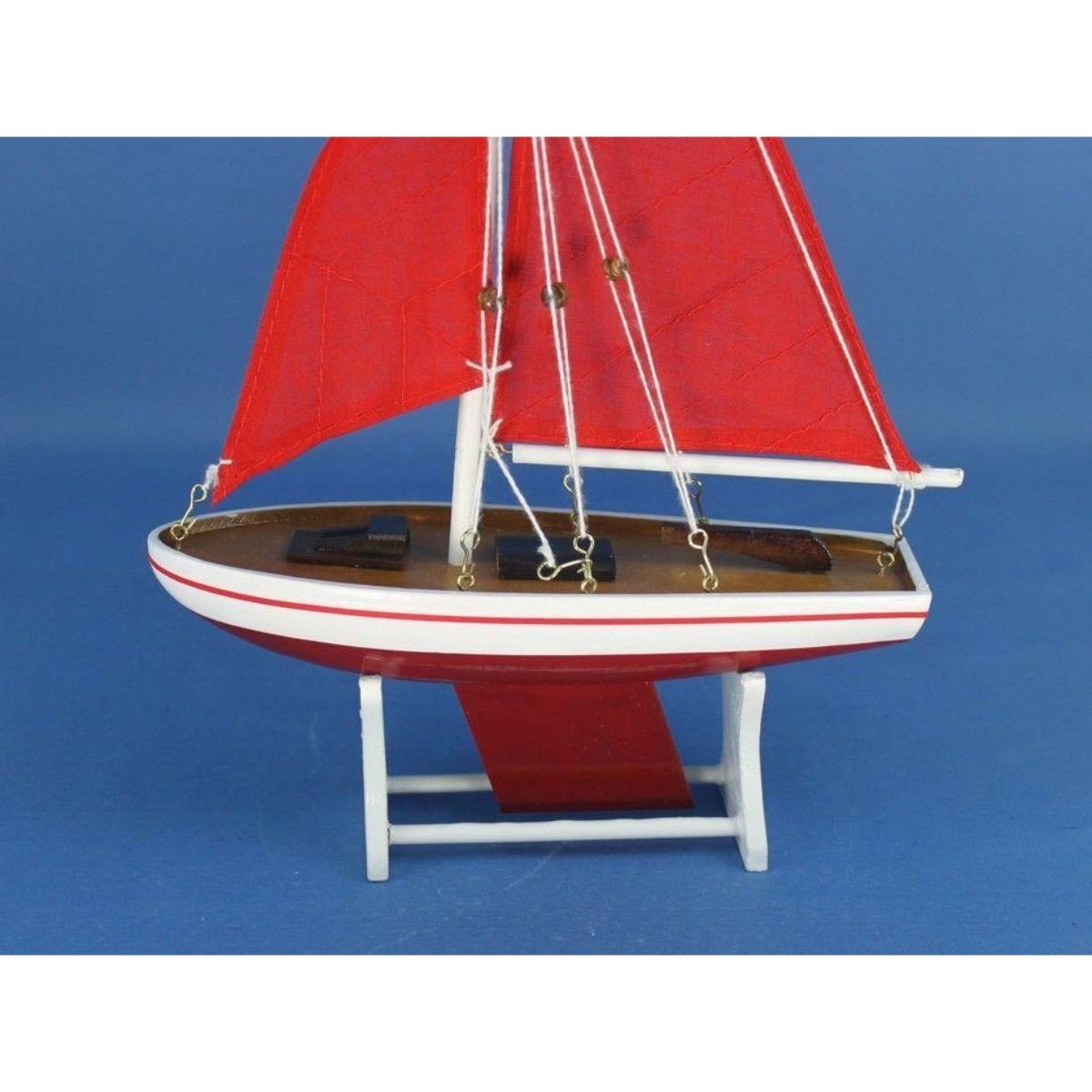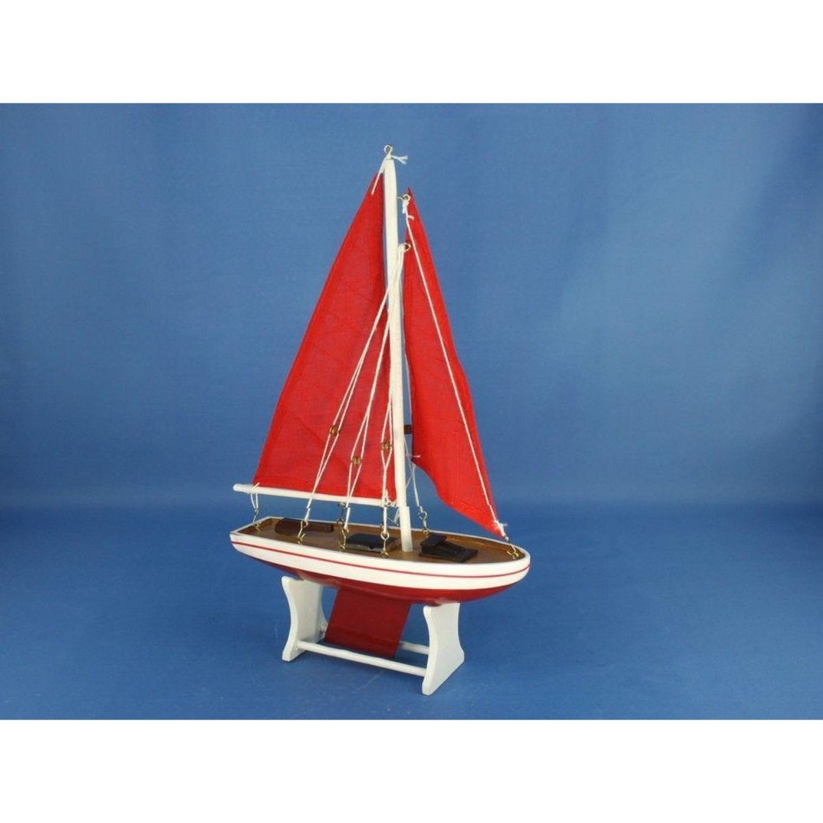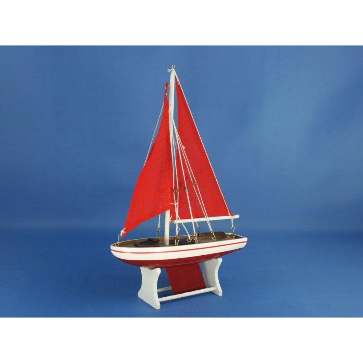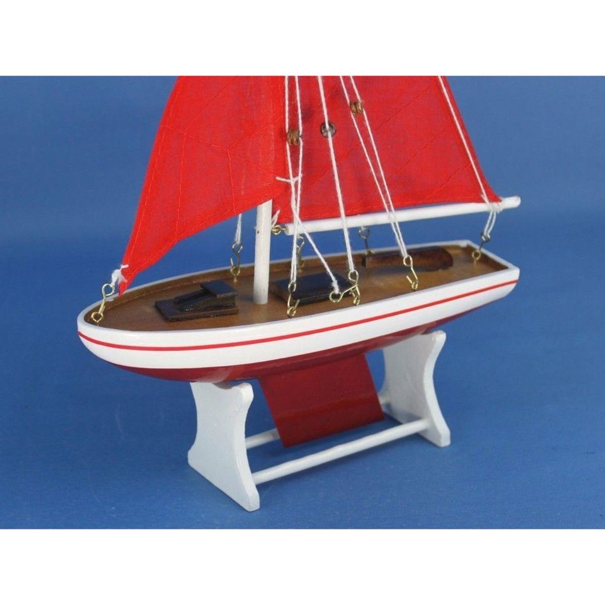 Wooden, It Floats 12" - Red with Red Sails Floating Sailboat Model NOT A MODEL SHIP KIT Attach Sails and the It Floats Sailboat is Ready for Immediate Display and Use  Our new It Floats - Red with Red Sails model salboat is freshly designed with increased craftsmanship and is our debut float alone sailboat. Available in 9 different styles/colors, this sailboat can be taken into the water and enjoyed by anyone. Included with your purchase is a wooden base to prominently display the model after use. These sleek and elegant wooden model sailboats have seen careful attention paid to every detail. Bring a winning spirit and nautical flair to the decor of any room with the clean lines and graceful features of these model sailing boats.Attaching sails is a simple process typically taking no more than 2 minutes. Handcrafted from solid wood by our master artisans Wooden base included with sailboat to prominently display model Our functional floating sailboat is waterproof. IT FLOATS! Suits any room or decor with clean lines and simple colors
