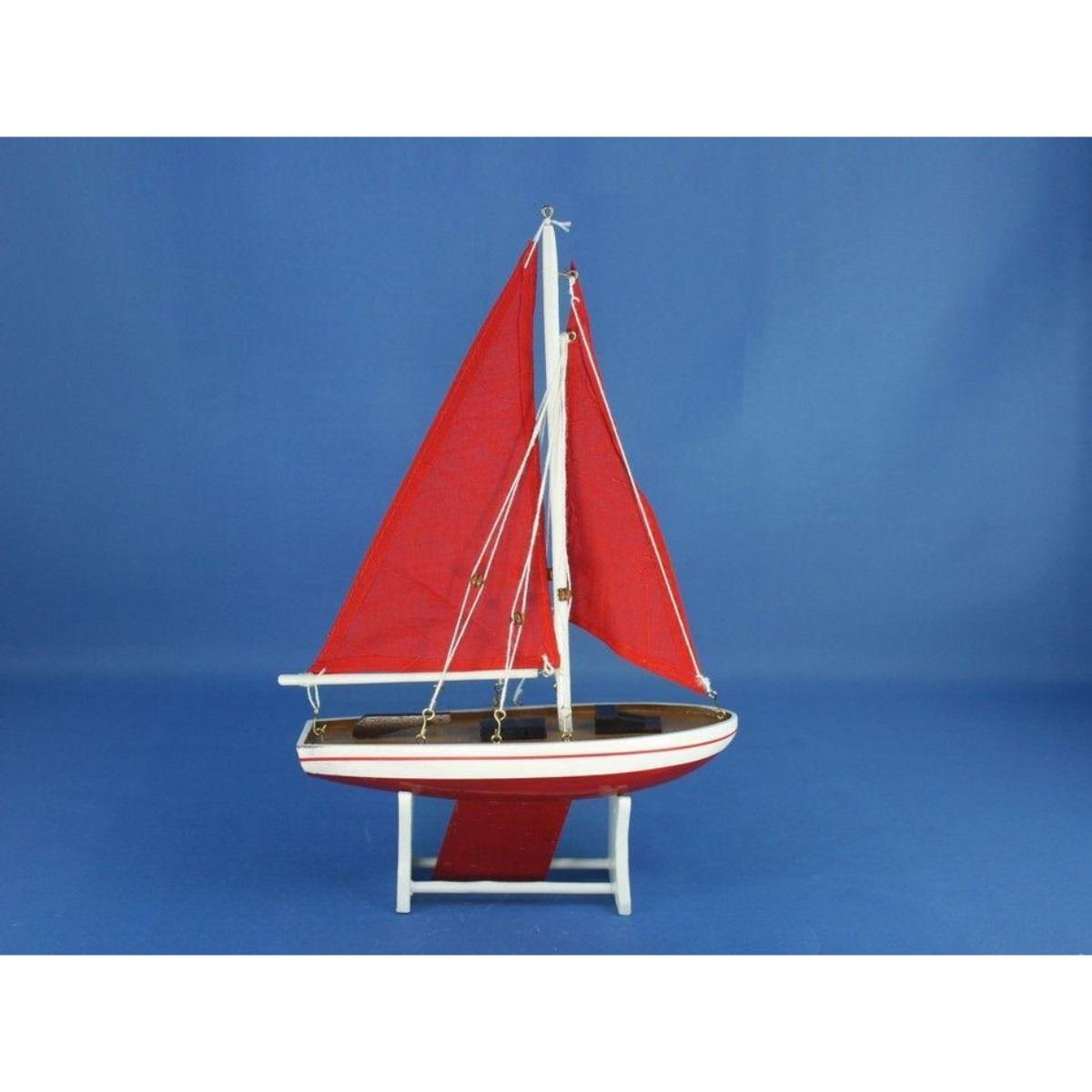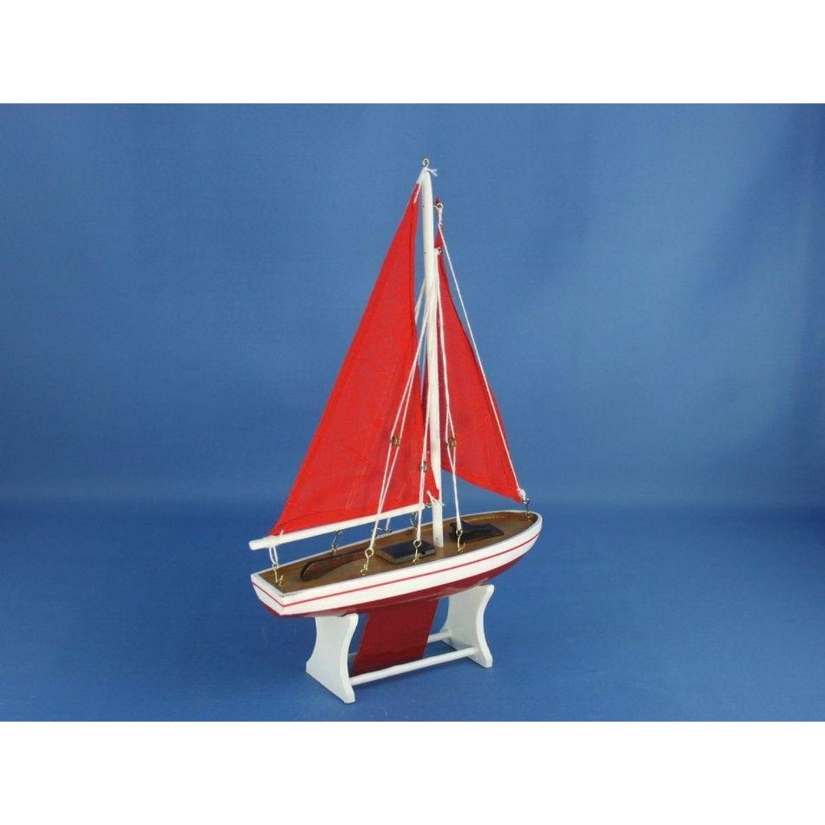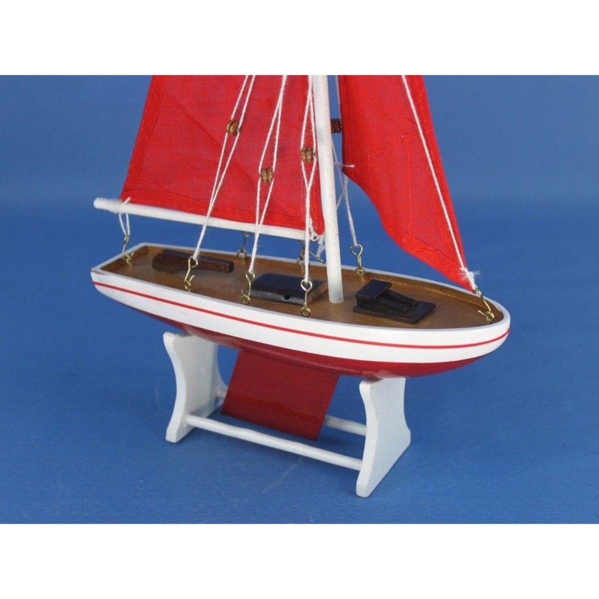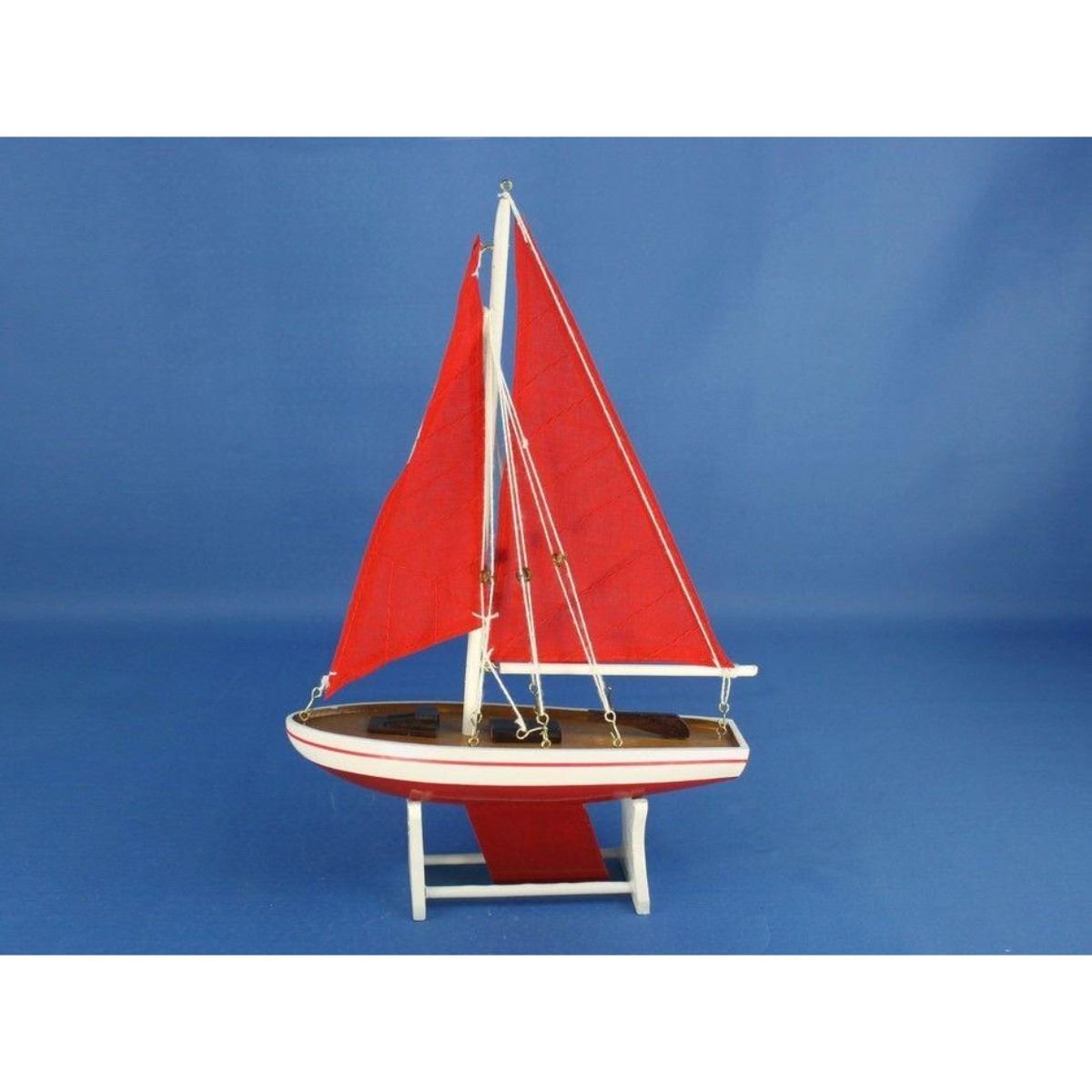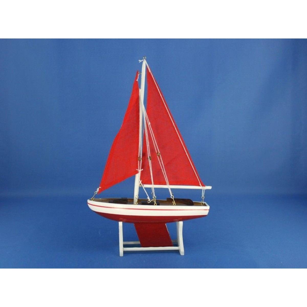 Wooden, It Floats 12" - Red with Red Sails Floating Sailboat Model NOT A MODEL SHIP KIT Attach Sails and the It Floats Sailboat is Ready for Immediate Display and Use  Our new It Floats - Red with Red Sails model salboat is freshly designed with increased craftsmanship and is our debut float alone sailboat. Available in 9 different styles/colors, this sailboat can be taken into the water and enjoyed by anyone. Included with your purchase is a wooden base to prominently display the model after use. These sleek and elegant wooden model sailboats have seen careful attention paid to every detail. Bring a winning spirit and nautical flair to the decor of any room with the clean lines and graceful features of these model sailing boats.Attaching sails is a simple process typically taking no more than 2 minutes. Handcrafted from solid wood by our master artisans Wooden base included with sailboat to prominently display model Our functional floating sailboat is waterproof. IT FLOATS! Suits any room or decor with clean lines and simple colors