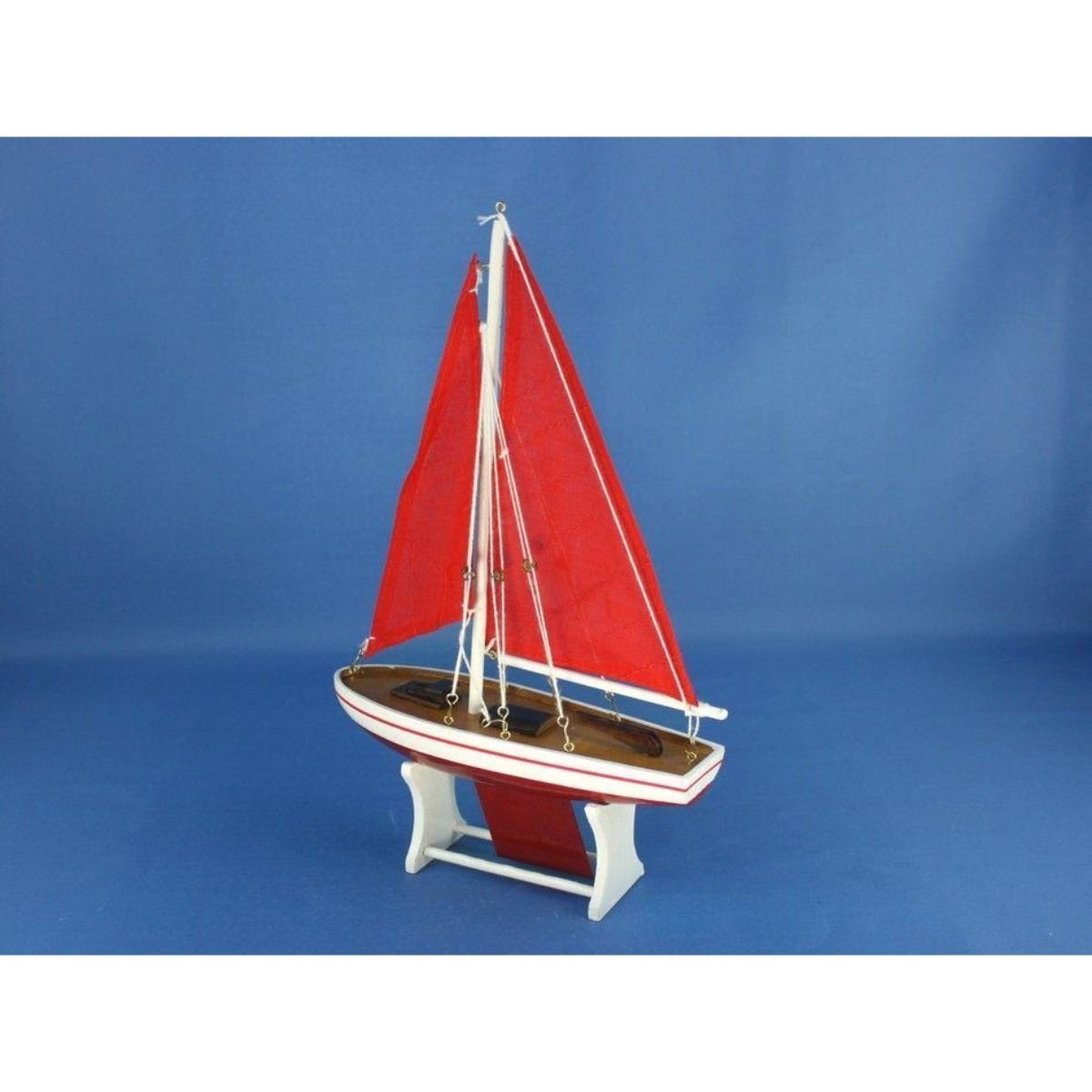 Wooden, It Floats 12" - Red with Red Sails Floating Sailboat Model NOT A MODEL SHIP KIT Attach Sails and the It Floats Sailboat is Ready for Immediate Display and Use  Our new It Floats - Red with Red Sails model salboat is freshly designed with increased craftsmanship and is our debut float alone sailboat. Available in 9 different styles/colors, this sailboat can be taken into the water and enjoyed by anyone. Included with your purchase is a wooden base to prominently display the model after use. These sleek and elegant wooden model sailboats have seen careful attention paid to every detail. Bring a winning spirit and nautical flair to the decor of any room with the clean lines and graceful features of these model sailing boats.Attaching sails is a simple process typically taking no more than 2 minutes. Handcrafted from solid wood by our master artisans Wooden base included with sailboat to prominently display model Our functional floating sailboat is waterproof. IT FLOATS! Suits any room or decor with clean lines and simple colors