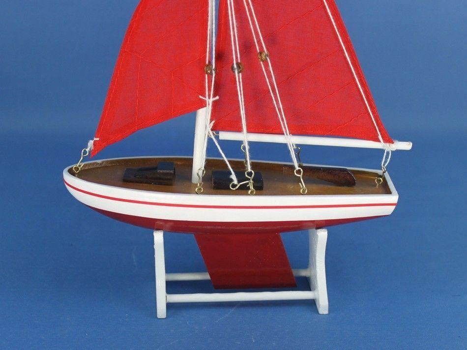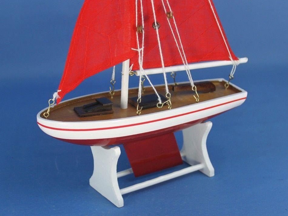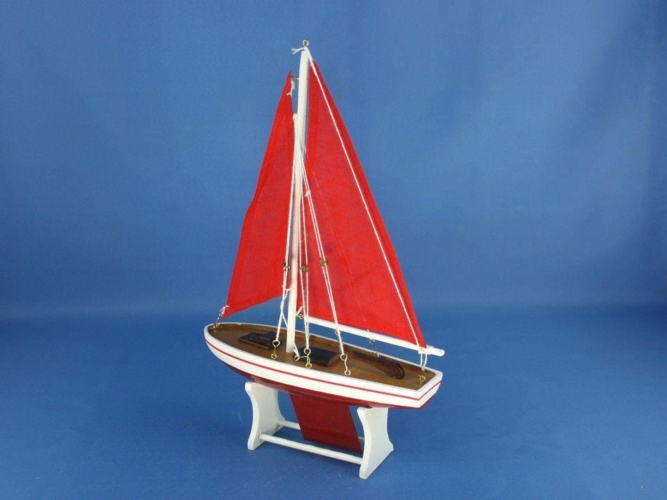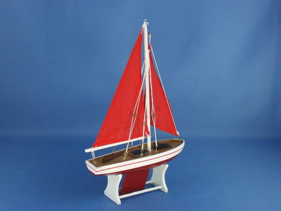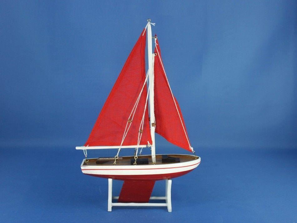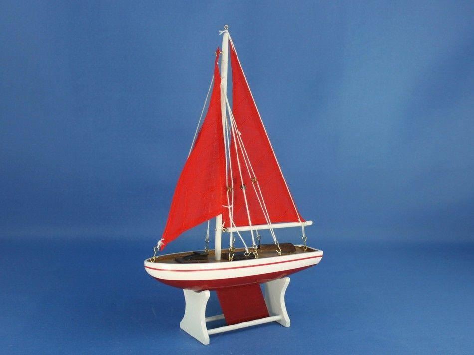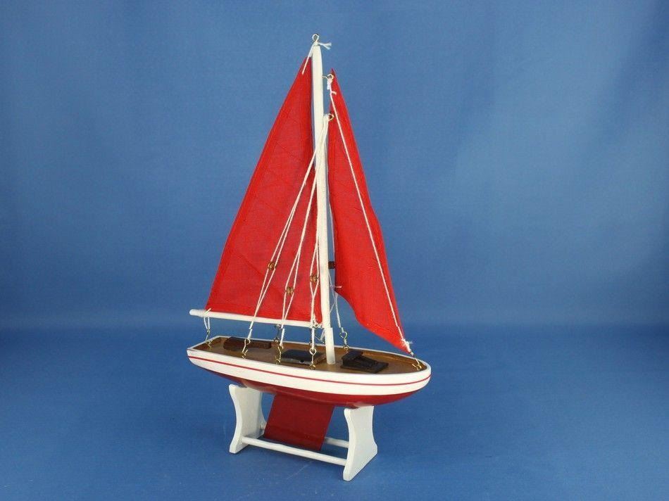 Wooden, It Floats 12" - Red with Red Sails Floating Sailboat Model NOT A MODEL SHIP KIT Attach Sails and the It Floats Sailboat is Ready for Immediate Display and Use  Our new It Floats - Red with Red Sails model salboat is freshly designed with increased craftsmanship and is our debut float alone sailboat. Available in 9 different styles/colors, this sailboat can be taken into the water and enjoyed by anyone. Included with your purchase is a wooden base to prominently display the model after use. These sleek and elegant wooden model sailboats have seen careful attention paid to every detail. Bring a winning spirit and nautical flair to the decor of any room with the clean lines and graceful features of these model sailing boats.Attaching sails is a simple process typically taking no more than 2 minutes. Handcrafted from solid wood by our master artisans Wooden base included with sailboat to prominently display model Our functional floating sailboat is waterproof. IT FLOATS! Suits any room or decor with clean lines and simple colors