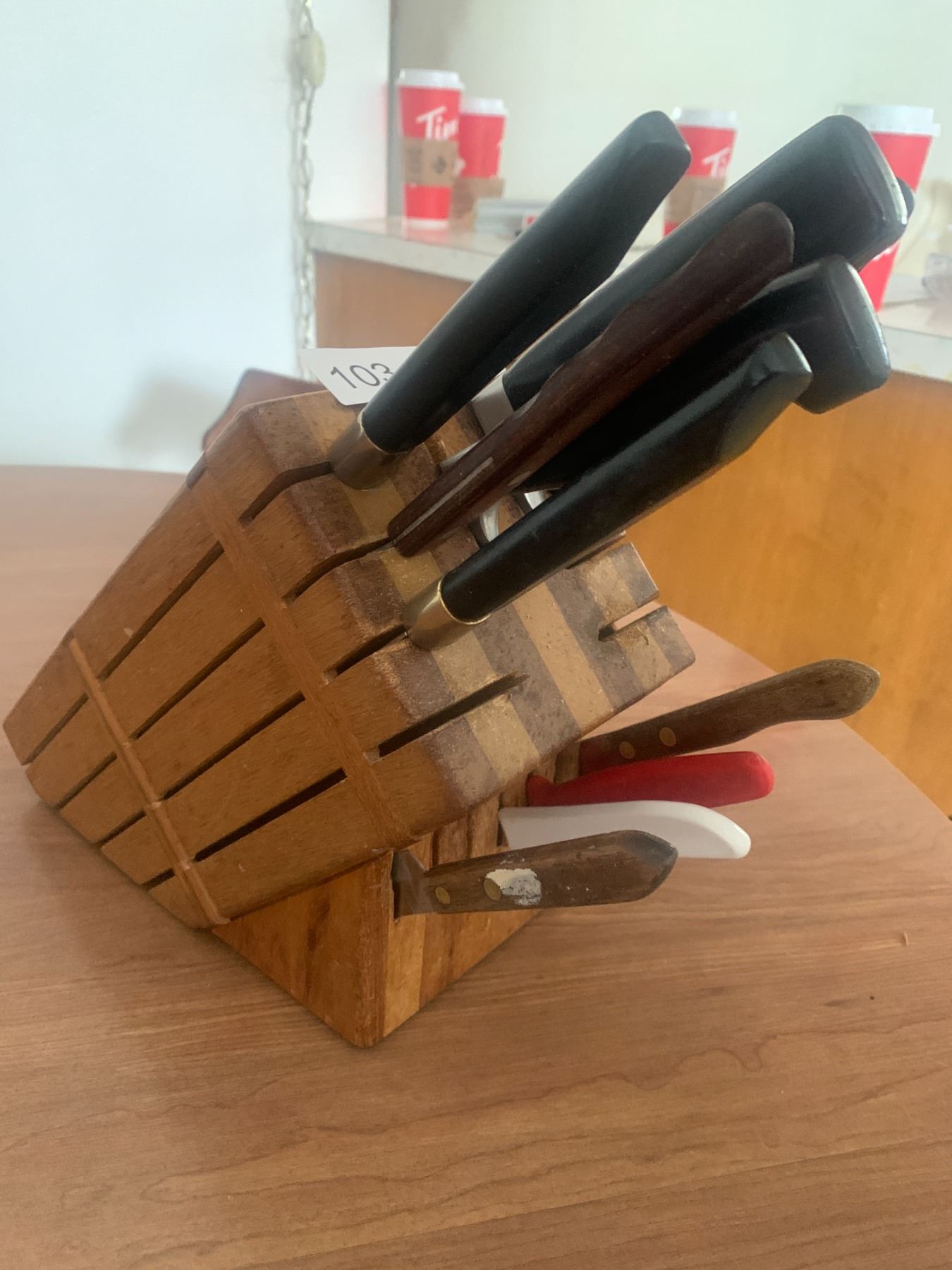 Wooden Knifeblock with Knife Sets - Includes Some Henckels