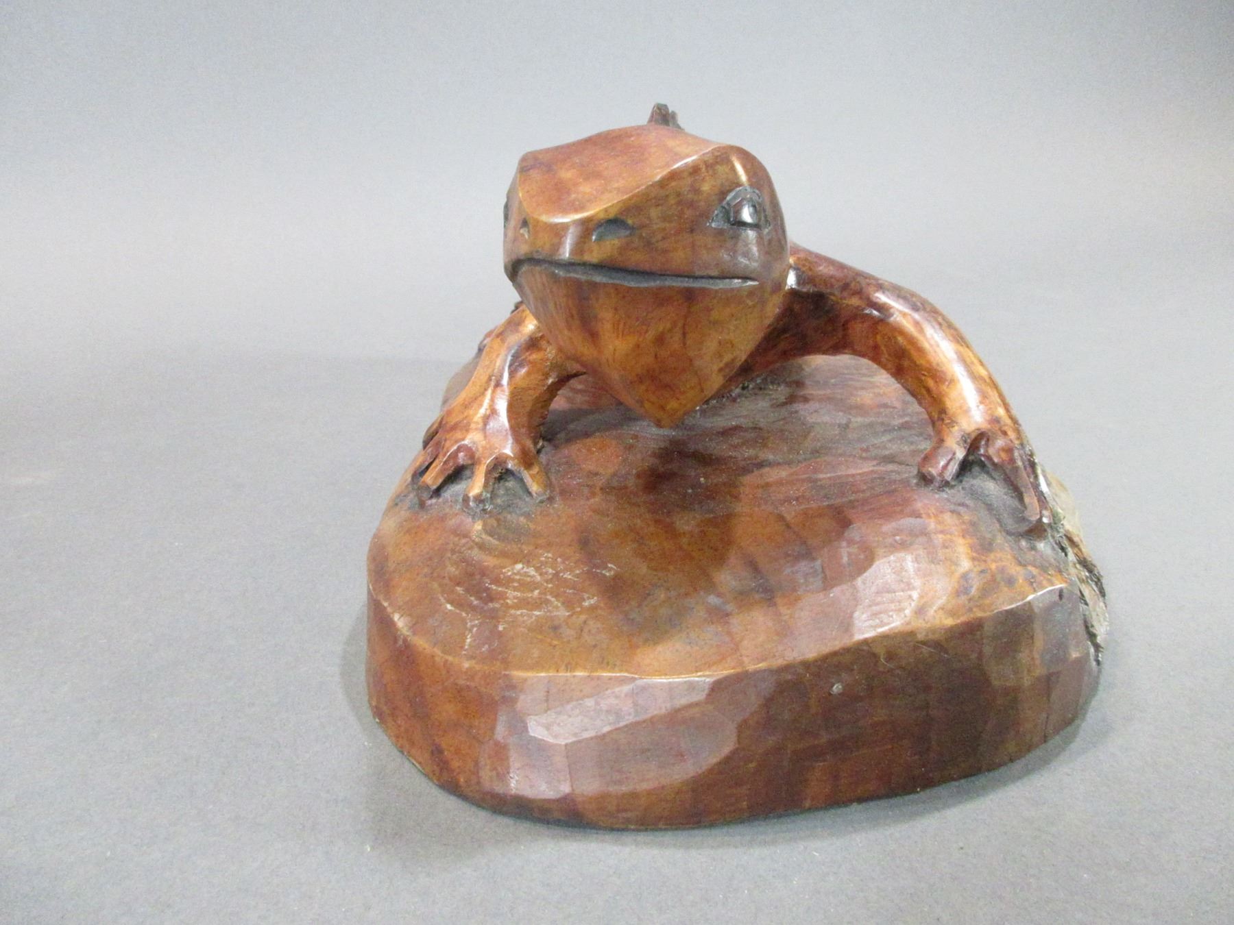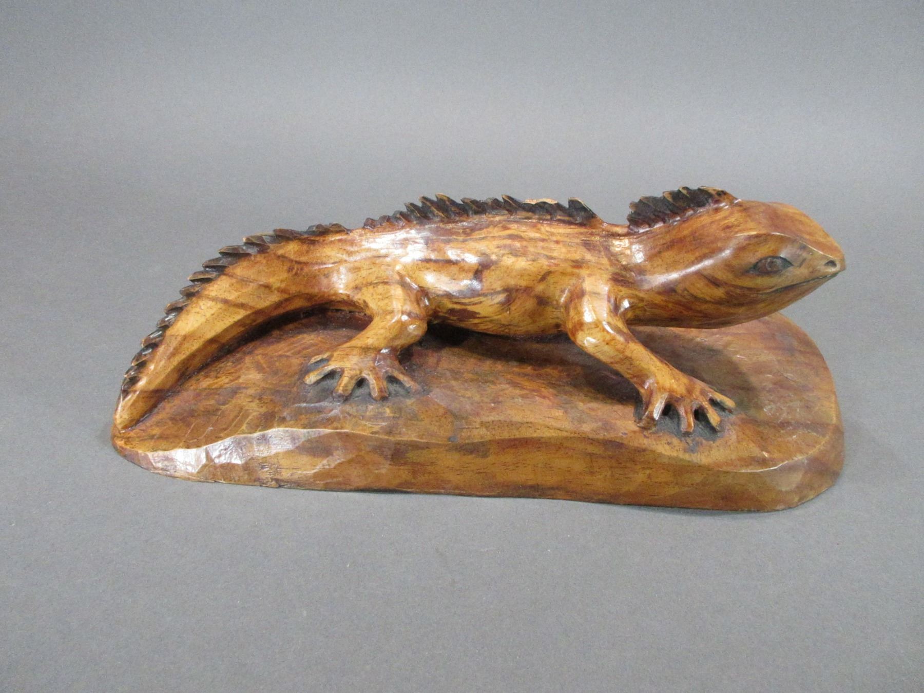 Wooden Lizard Carving- Chip On Back- 5"H X Base 14" X 8"