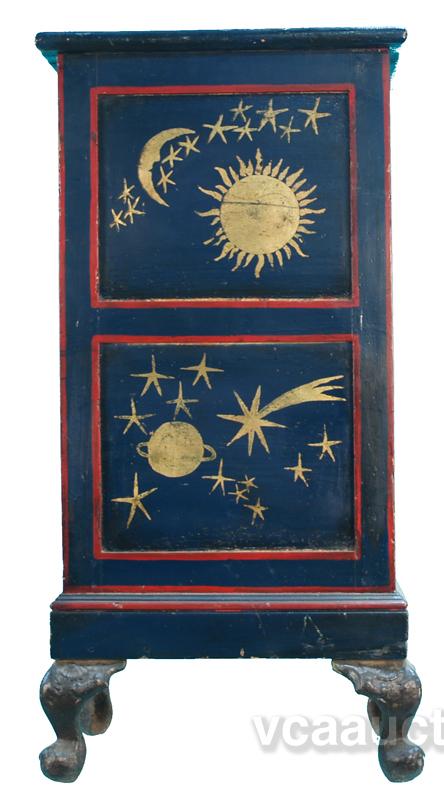 Wooden Machine Stand w/ Fancy Cast-Iron Feet, hand painted w/ stars, moons, sun & planets - 17" x 13" x 36" tall