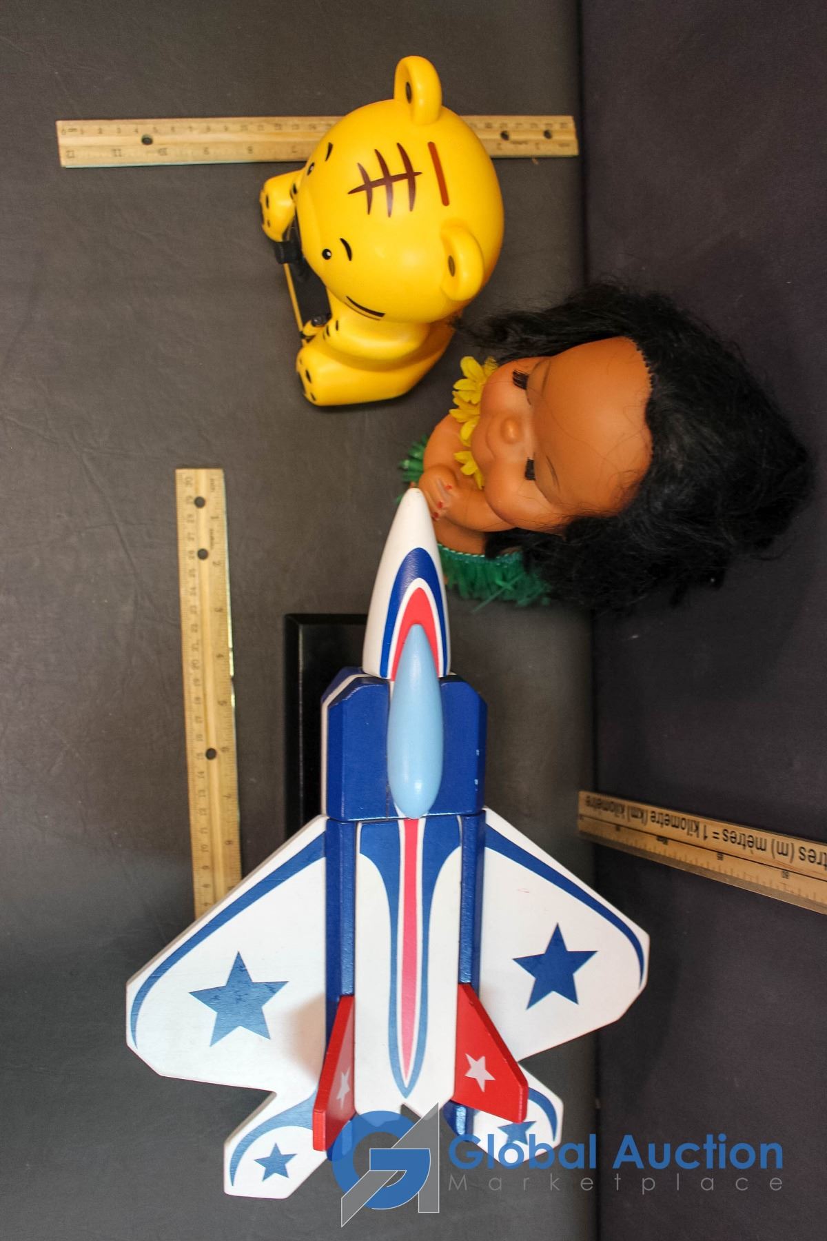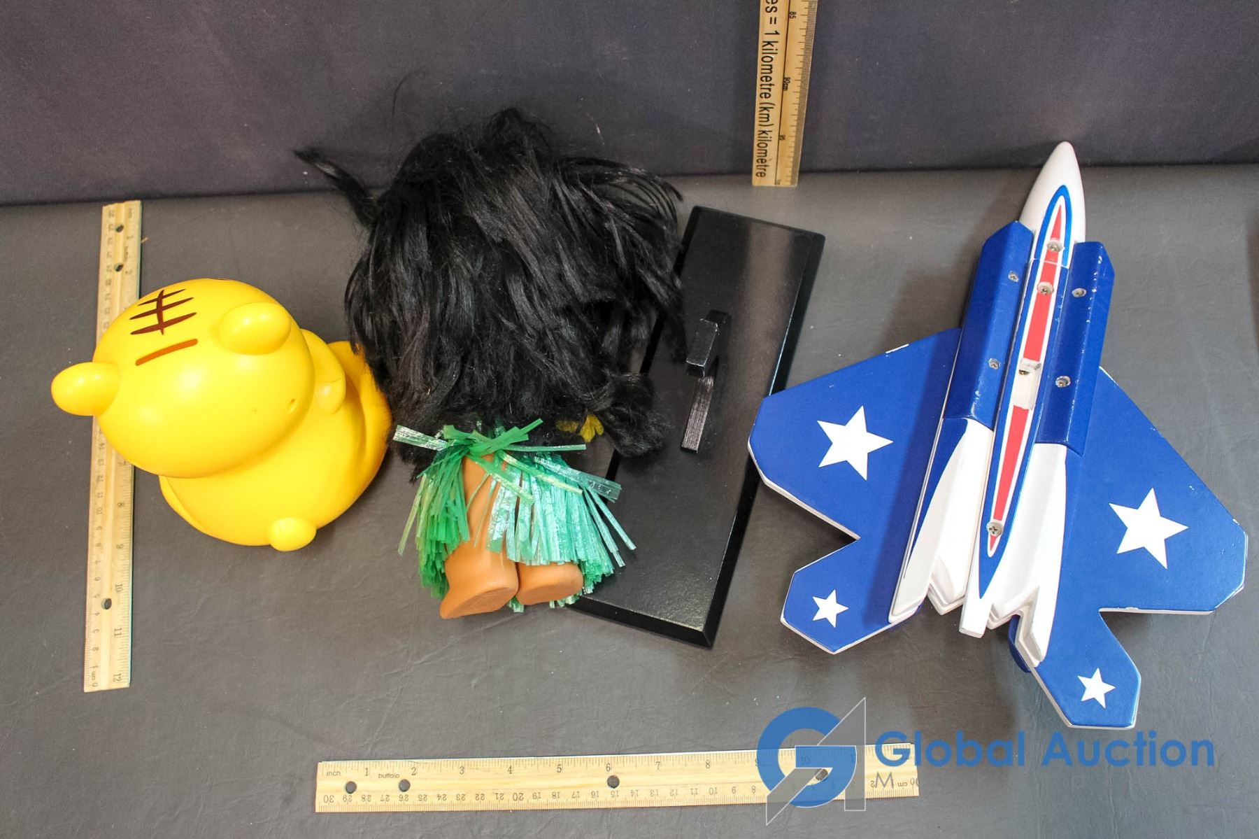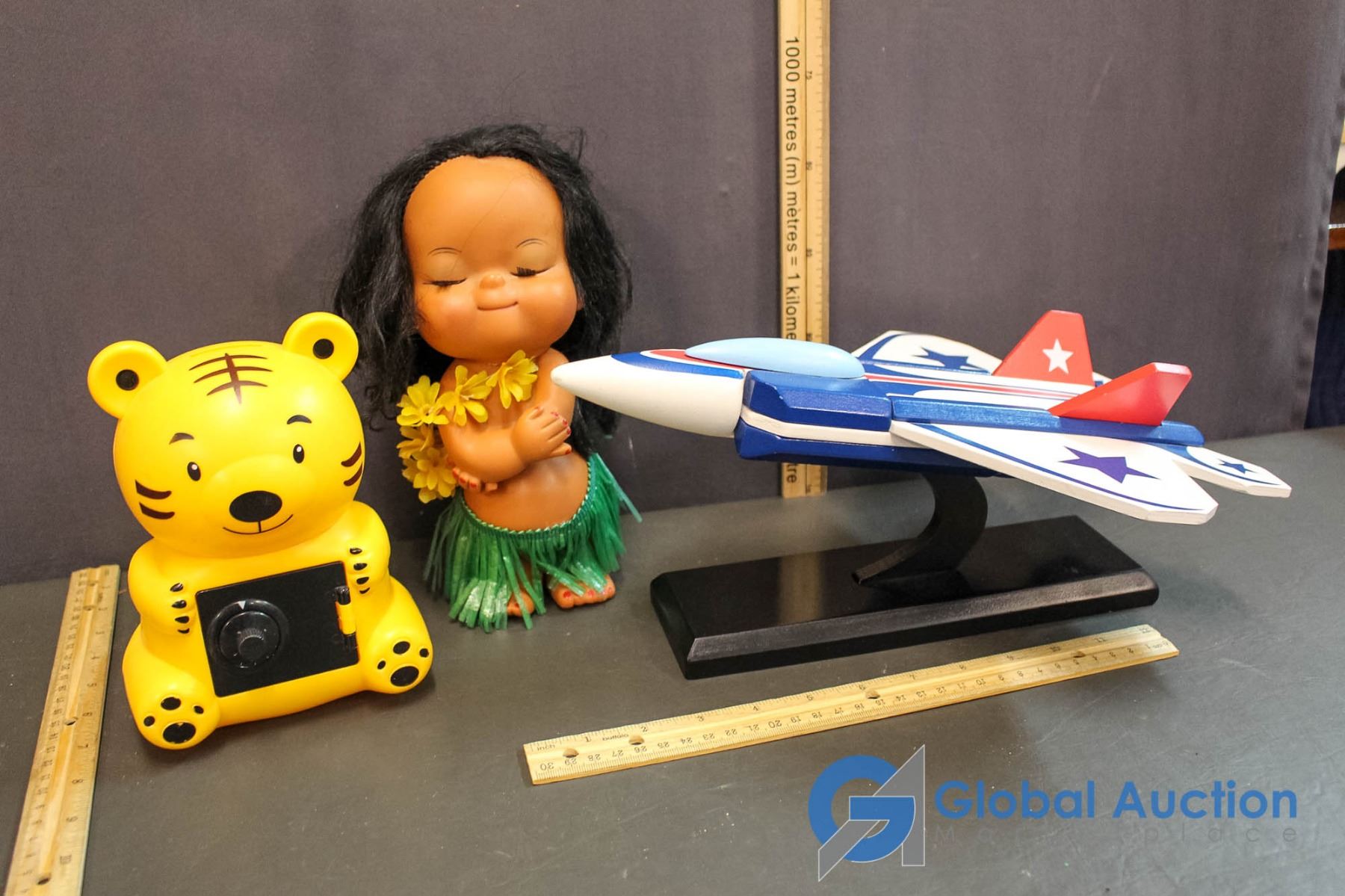 Wooden Model Airplane; Piggy Bank & Hawain Doll