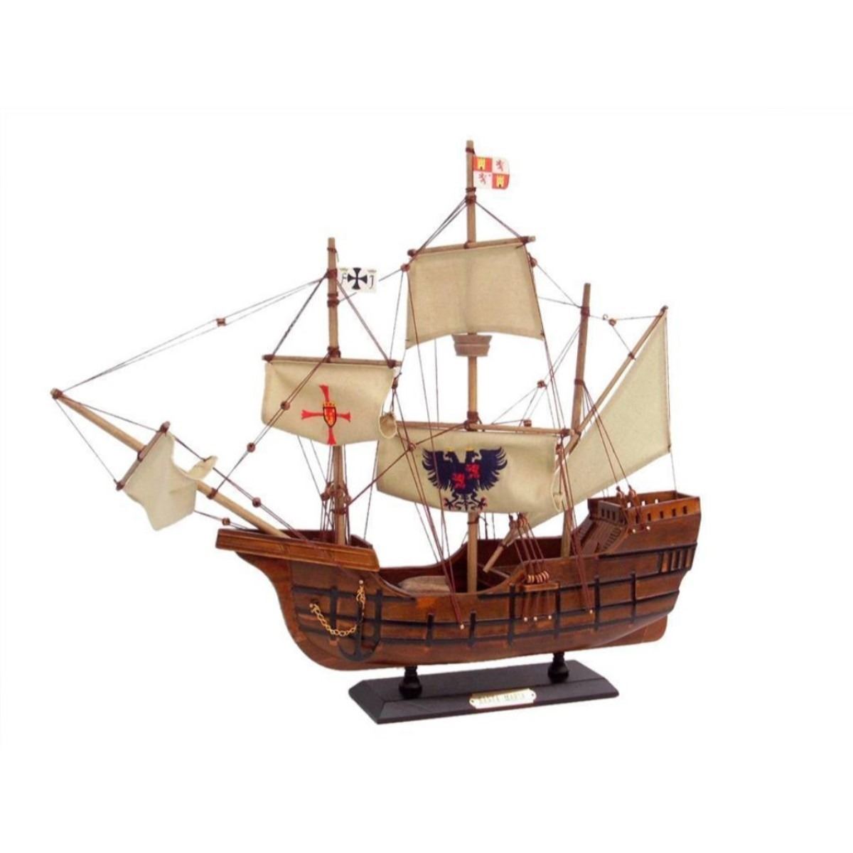 Historically accurate, wooden 20" fine tall ship model of the Santa Maria, flag ship of Christopher Columbus on his voyage to the New World. Fully assembled with hand-sewn, embroidered & mounted sails, handcrafted
