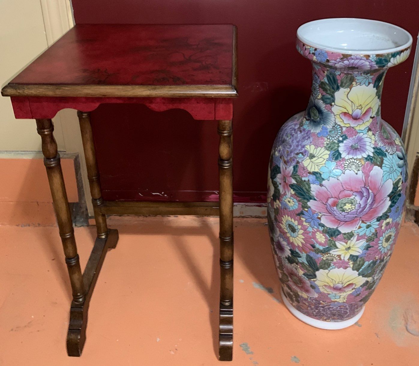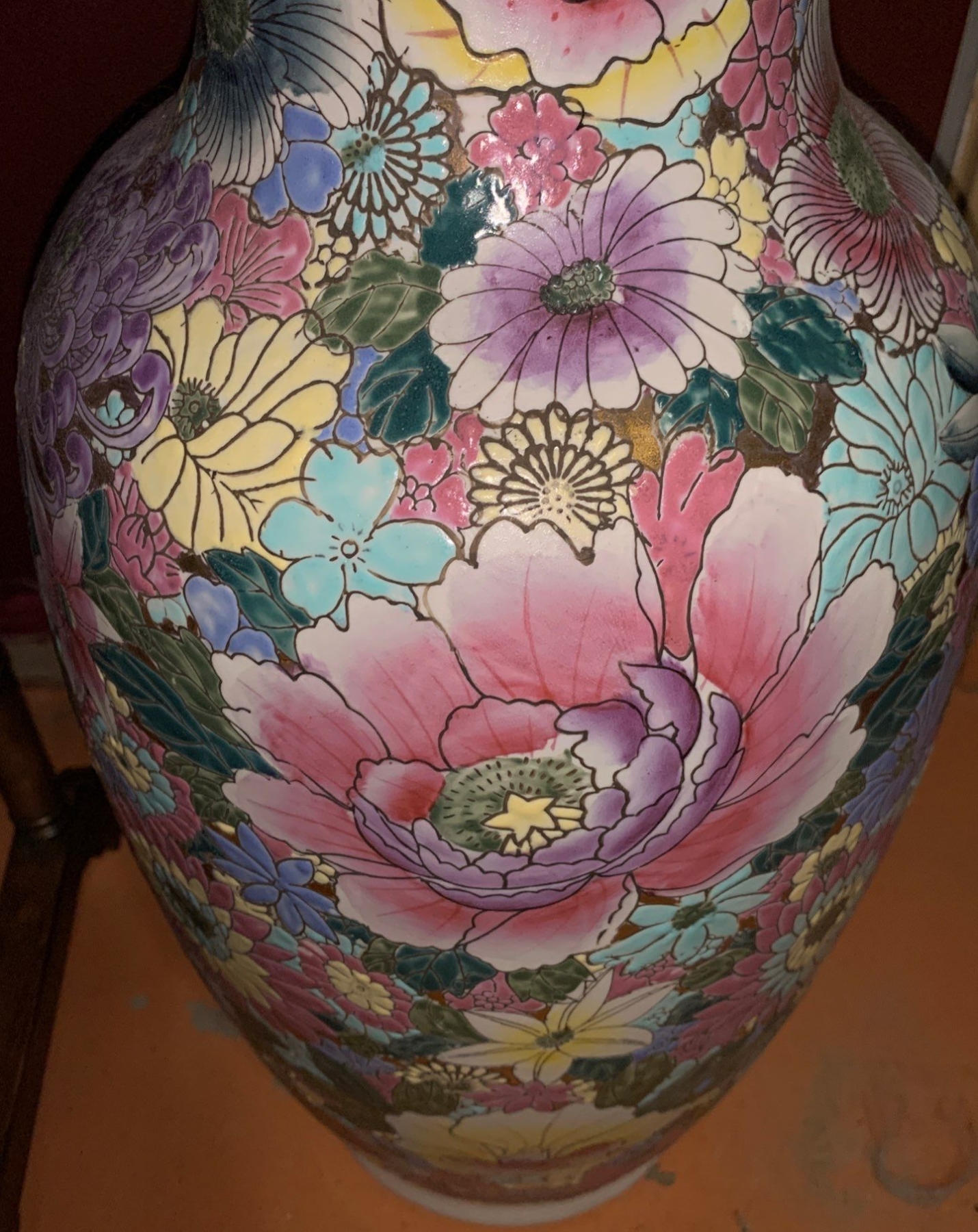 Painted Ceramic Floor Vase 28 T, 9 Diameter Base