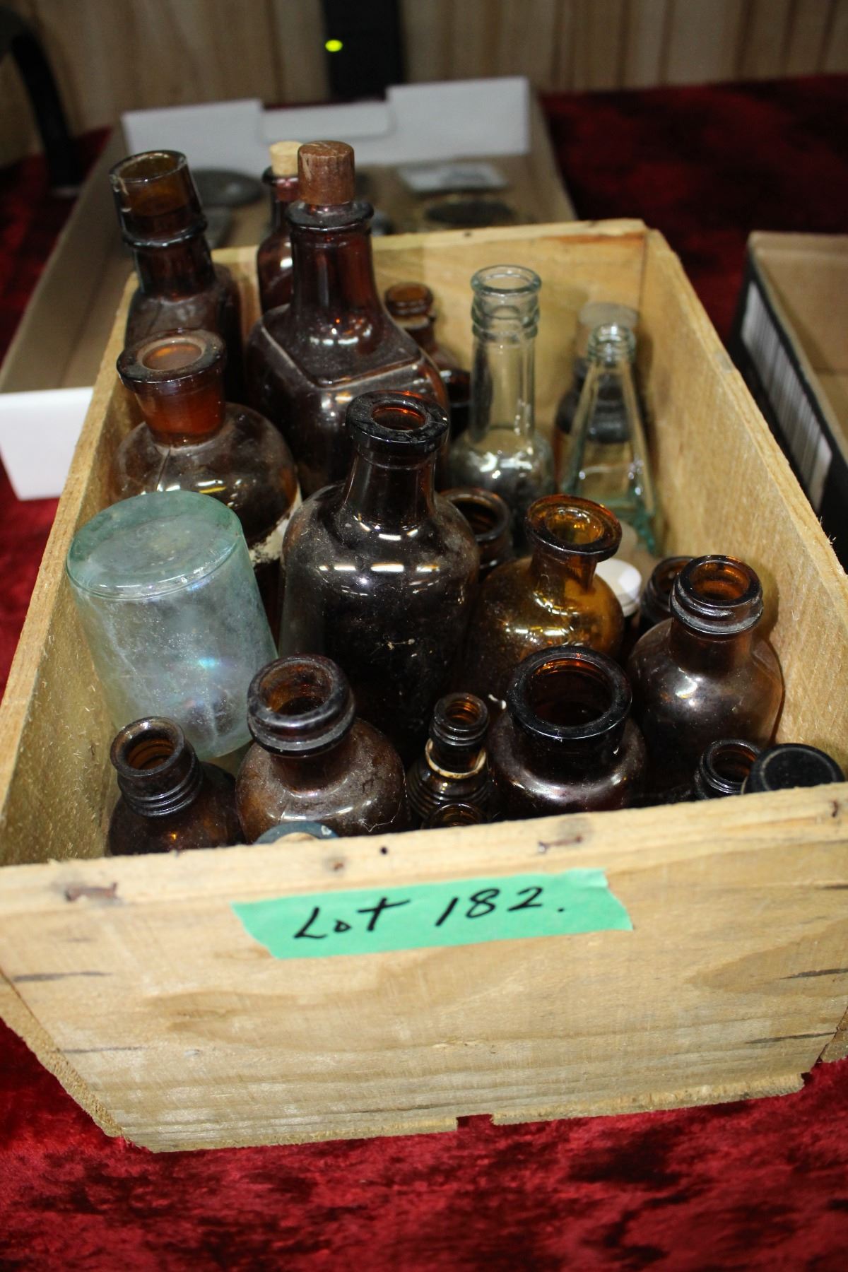 Wooden Orange Box w/Old Bottles of Varying Sizes