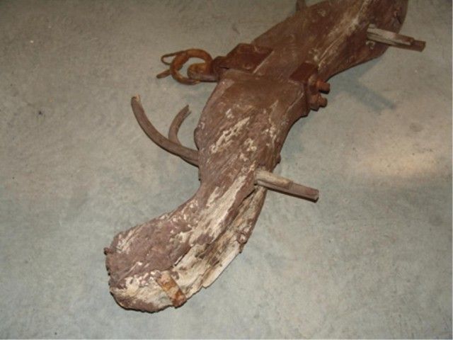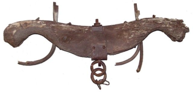 Classic design heavy old dual work collar with iron rigging and traditional bentwood keepers. Good condition, well used; some wood worn away. Circa: Late 1800s Size: 57" x 10" x 12"