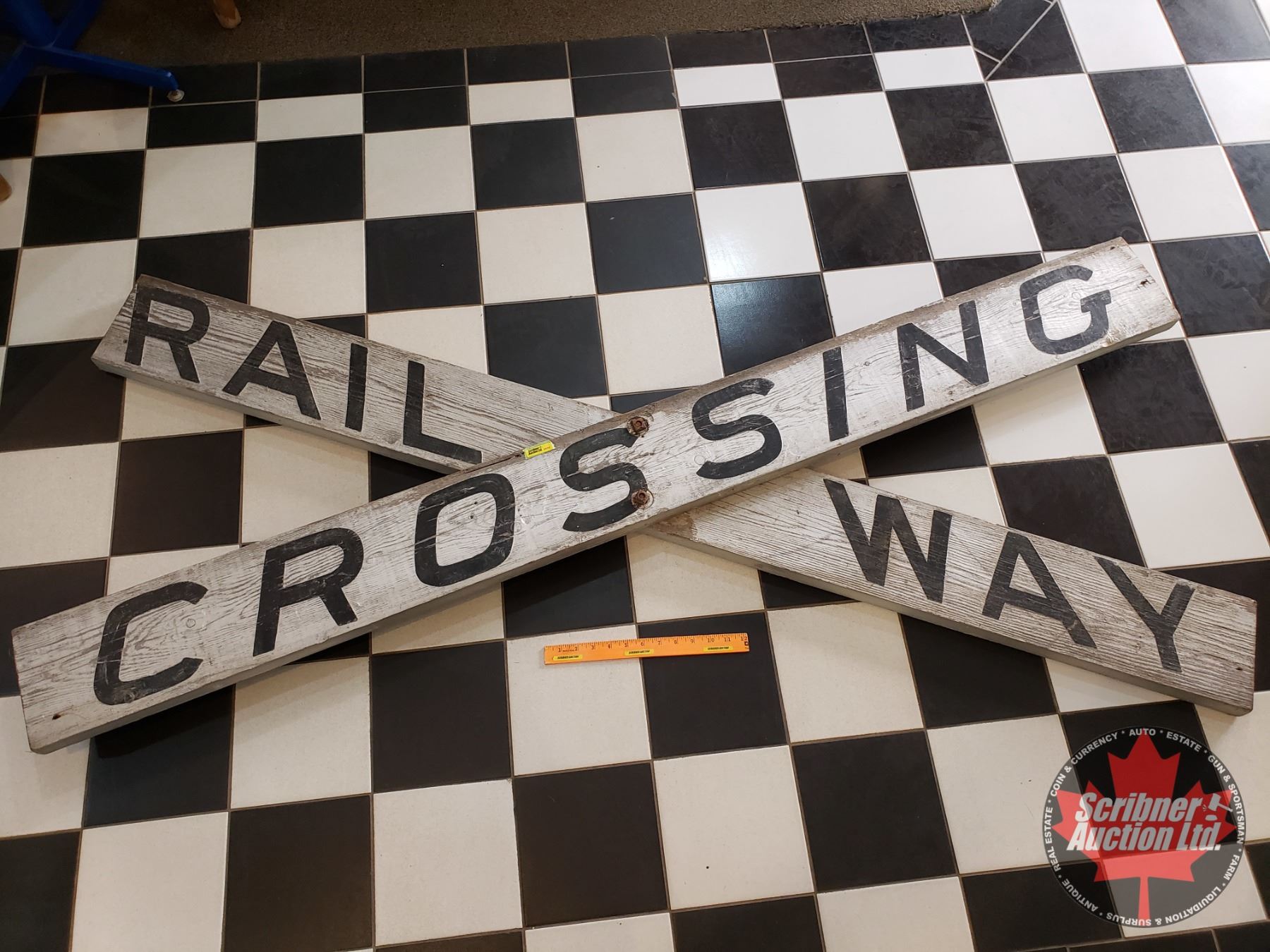 Wooden Railway Crossing Sign (Double Sided) (71-1/2"H x 32-1/2"W x 3"D)