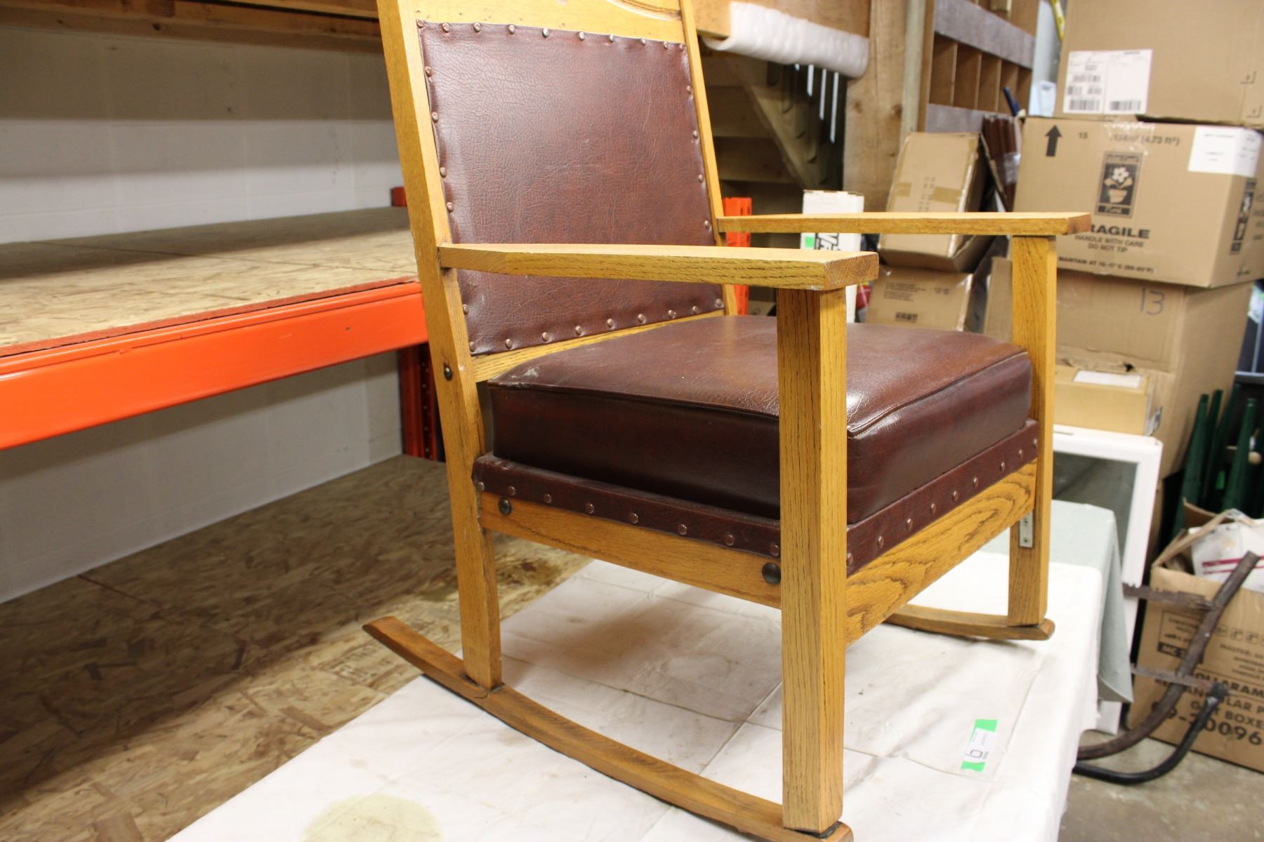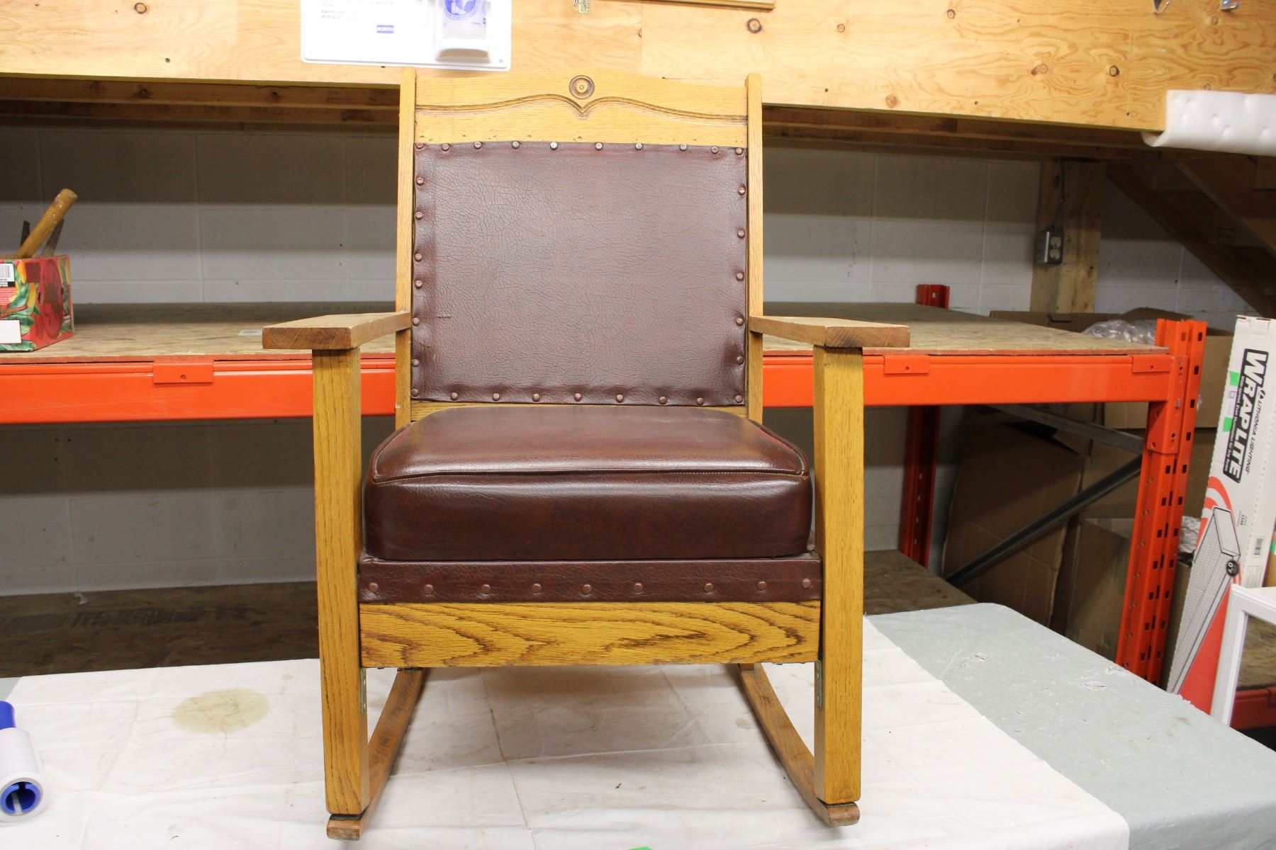Wooden Rocker Chair with Armrests and Leather Cushions