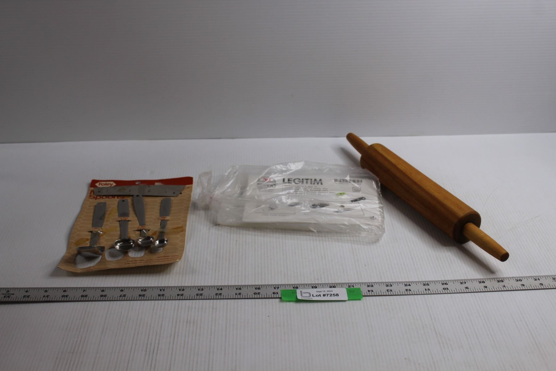 Wooden Rolling Pin, Foley Measuring Spoons & Ikea Cutting Board